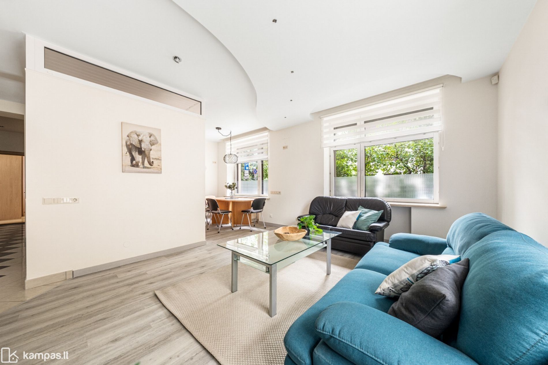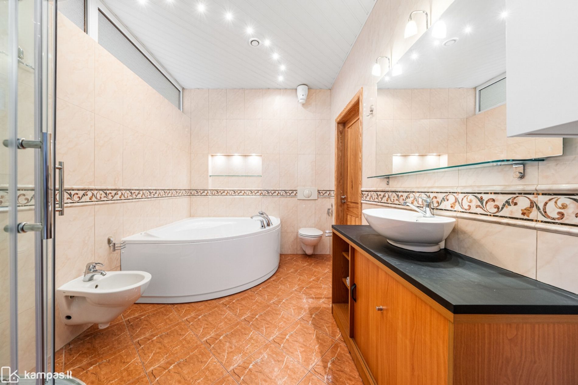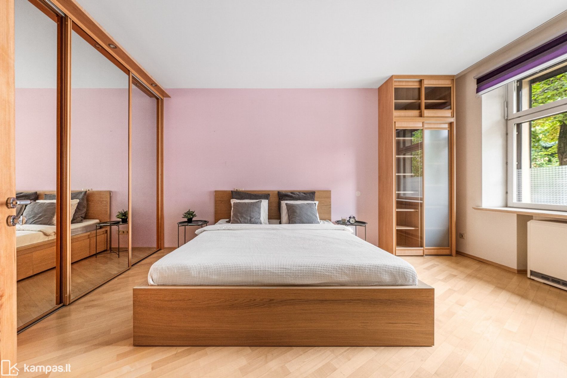 • Grindys: kokybiškas parketas, san.mazguose – plytelės, yra šildomos zonos