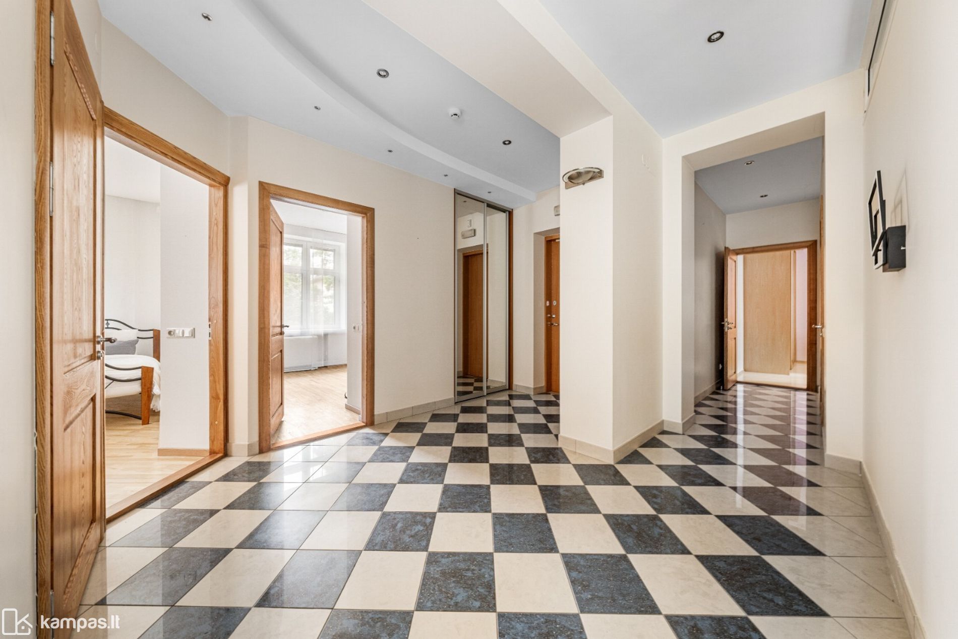 • Durys: įėjimo - šarvuotos, vidaus – natūralaus medžio