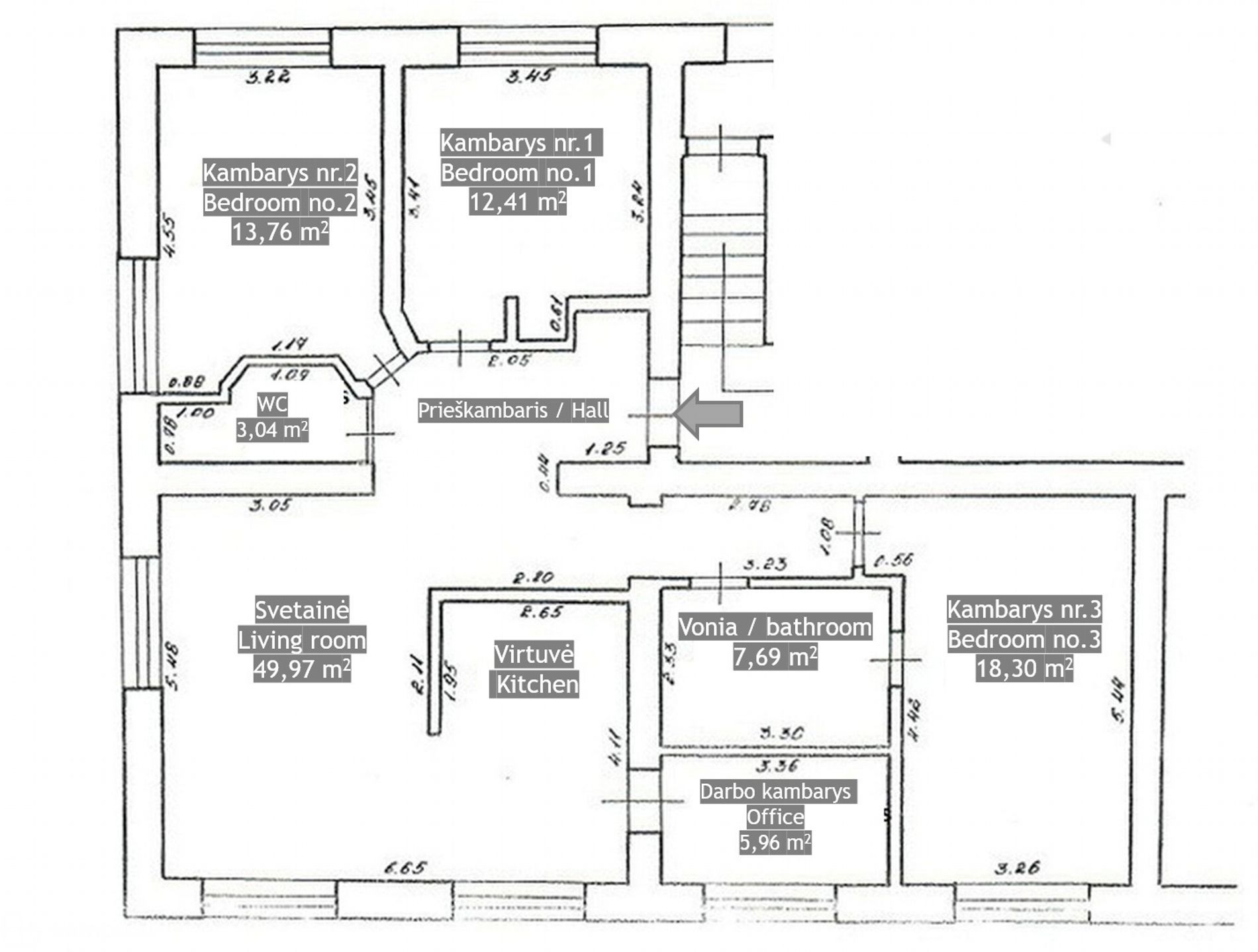 • Kambariai: 3 miegamieji kambariai, 1 darbo kambarys (mažas