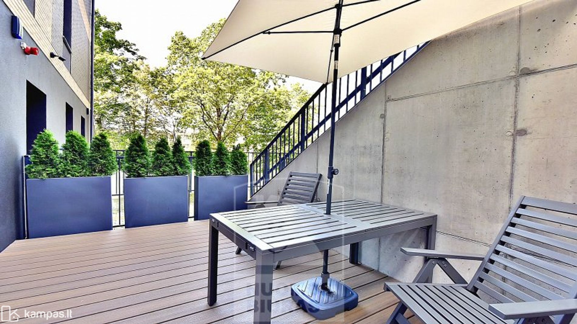 • Terasa apželdinta tujomis 15 m2.