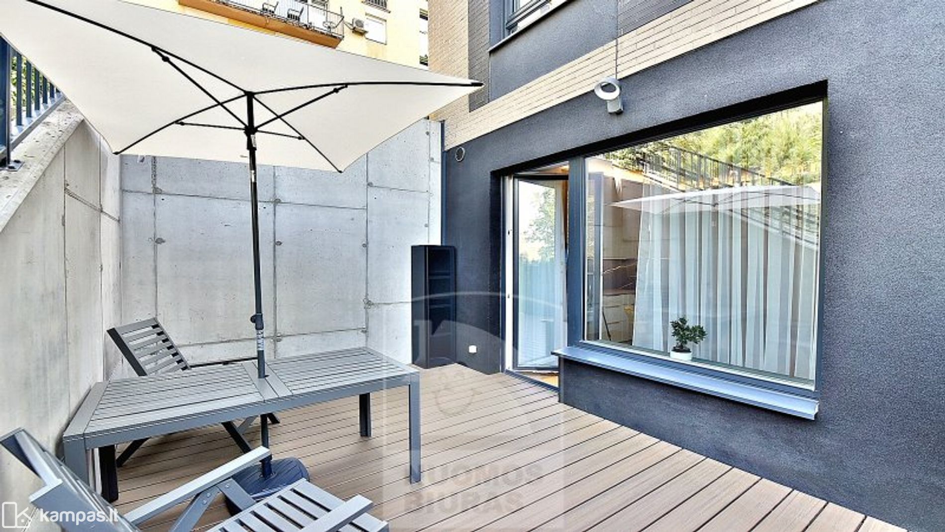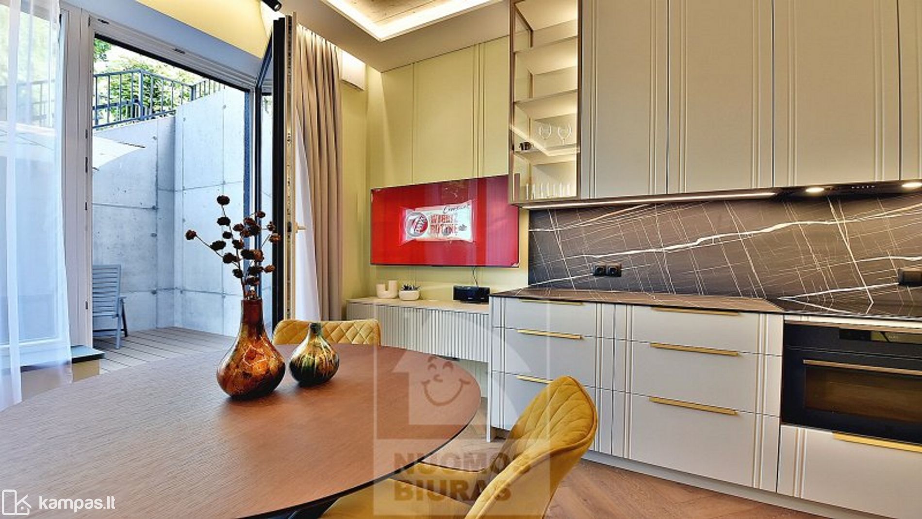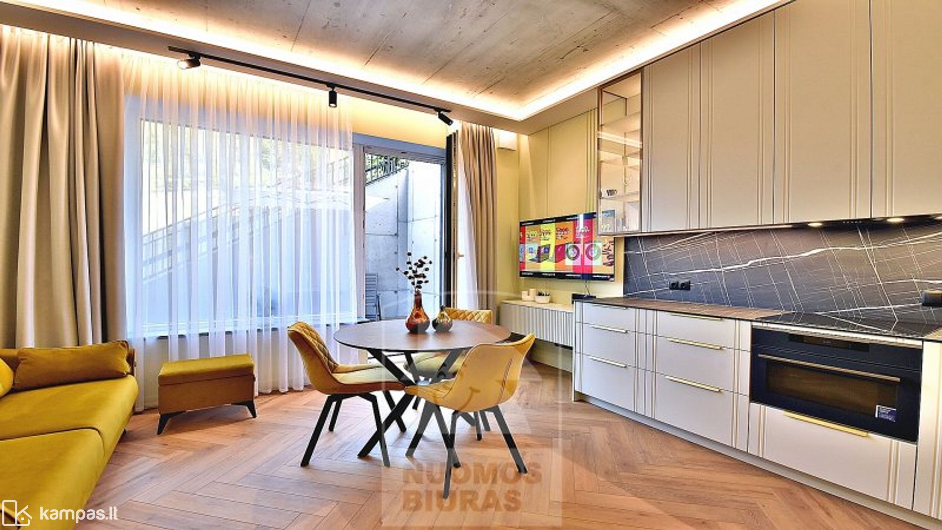 • Svetainė sujungta su moderniai įrengta virtuve, išėjimas į terasą.
