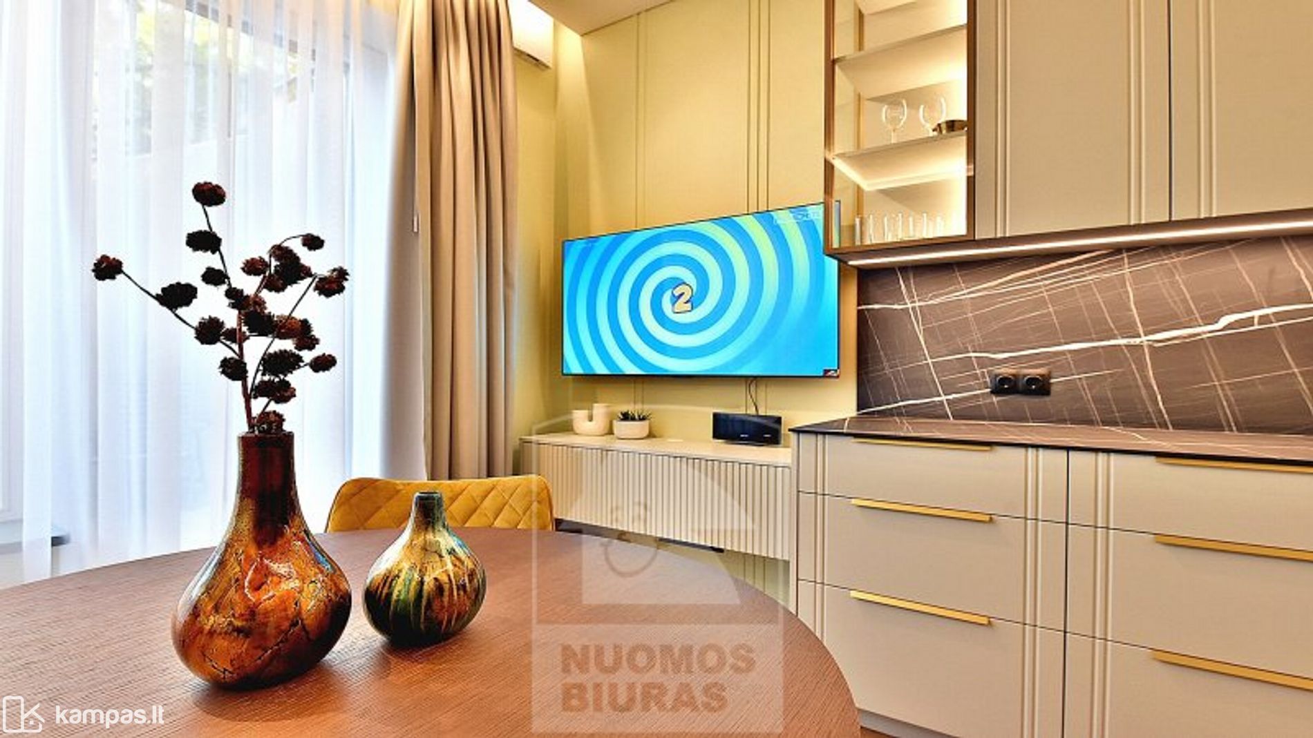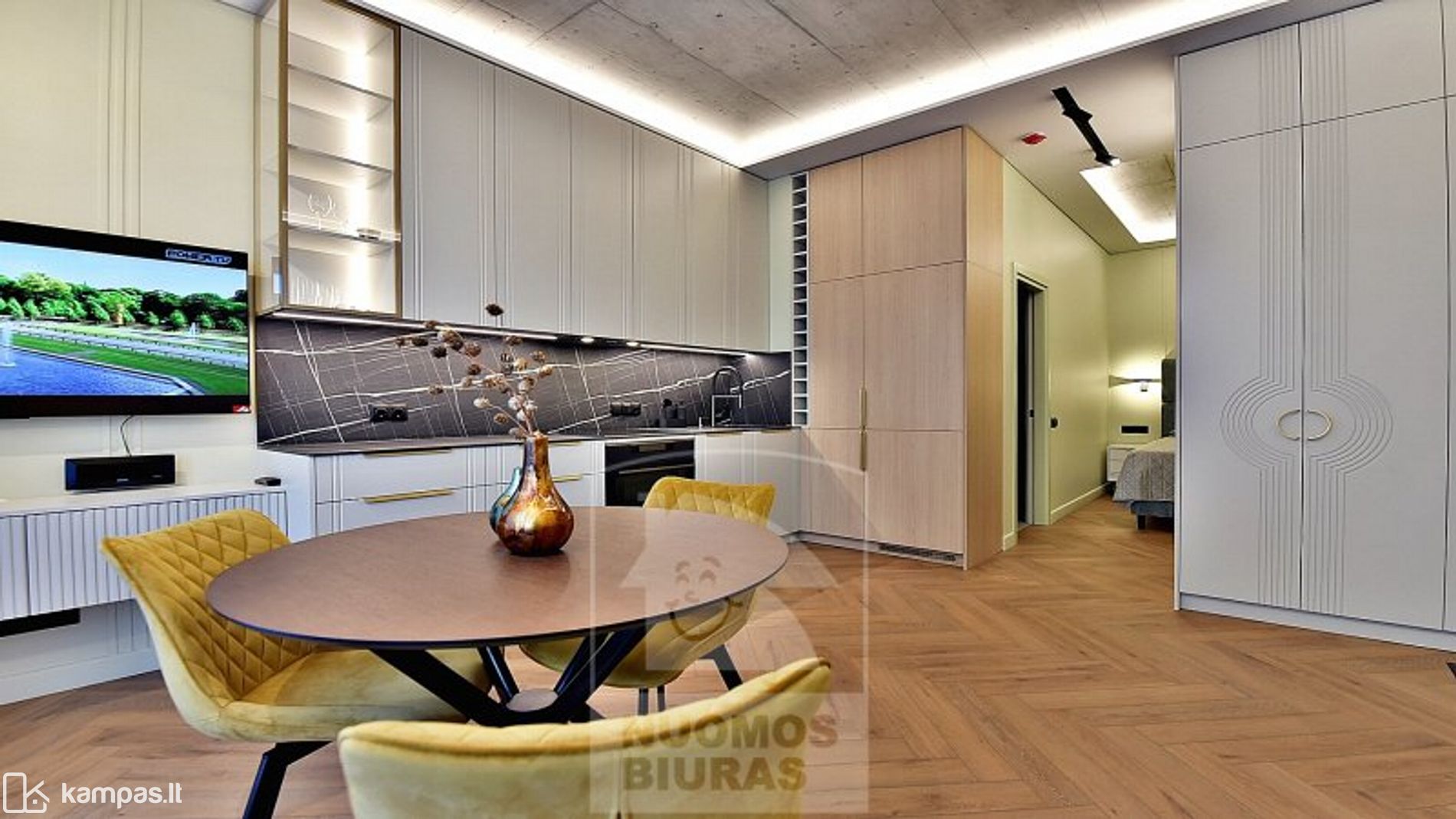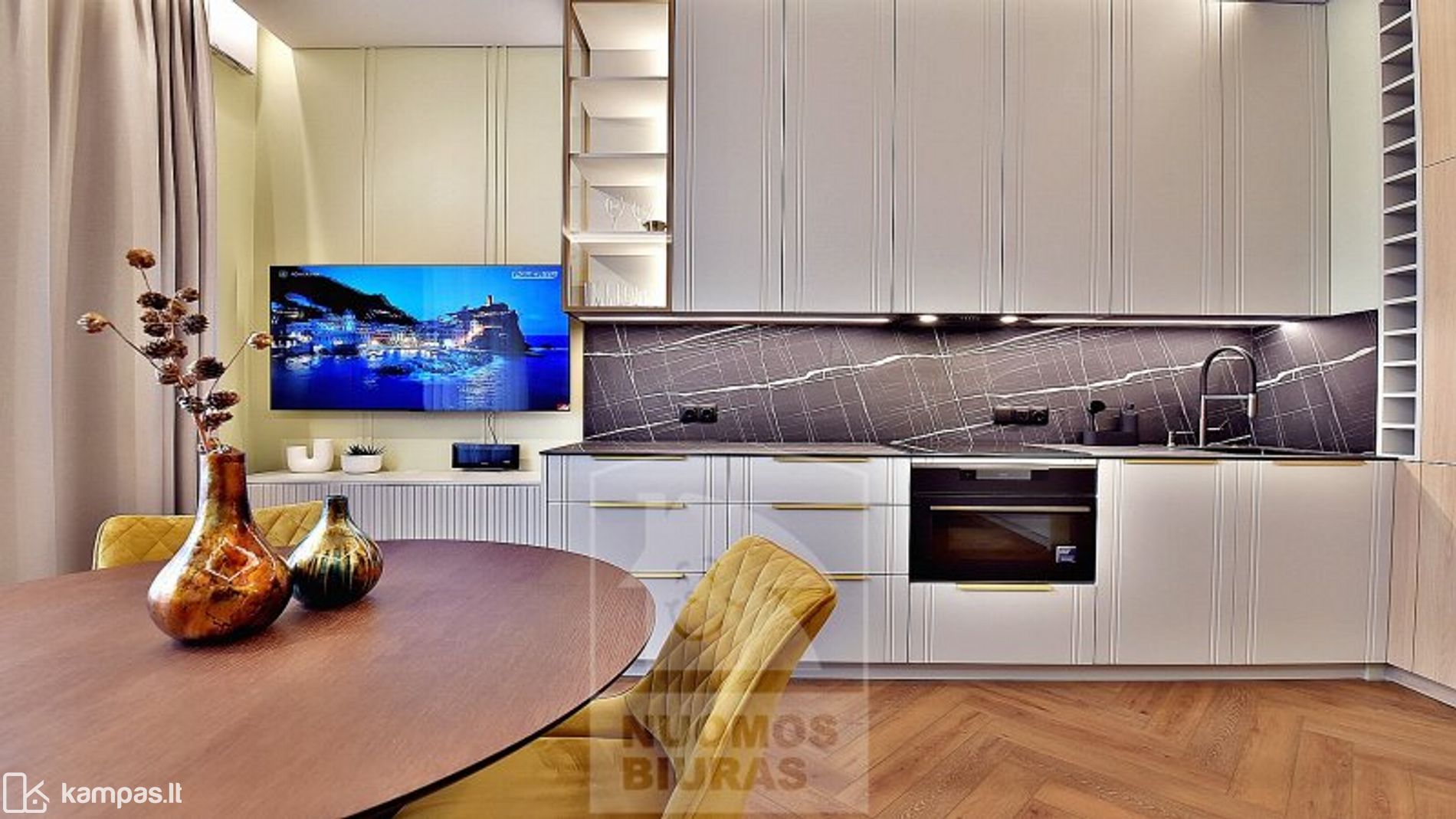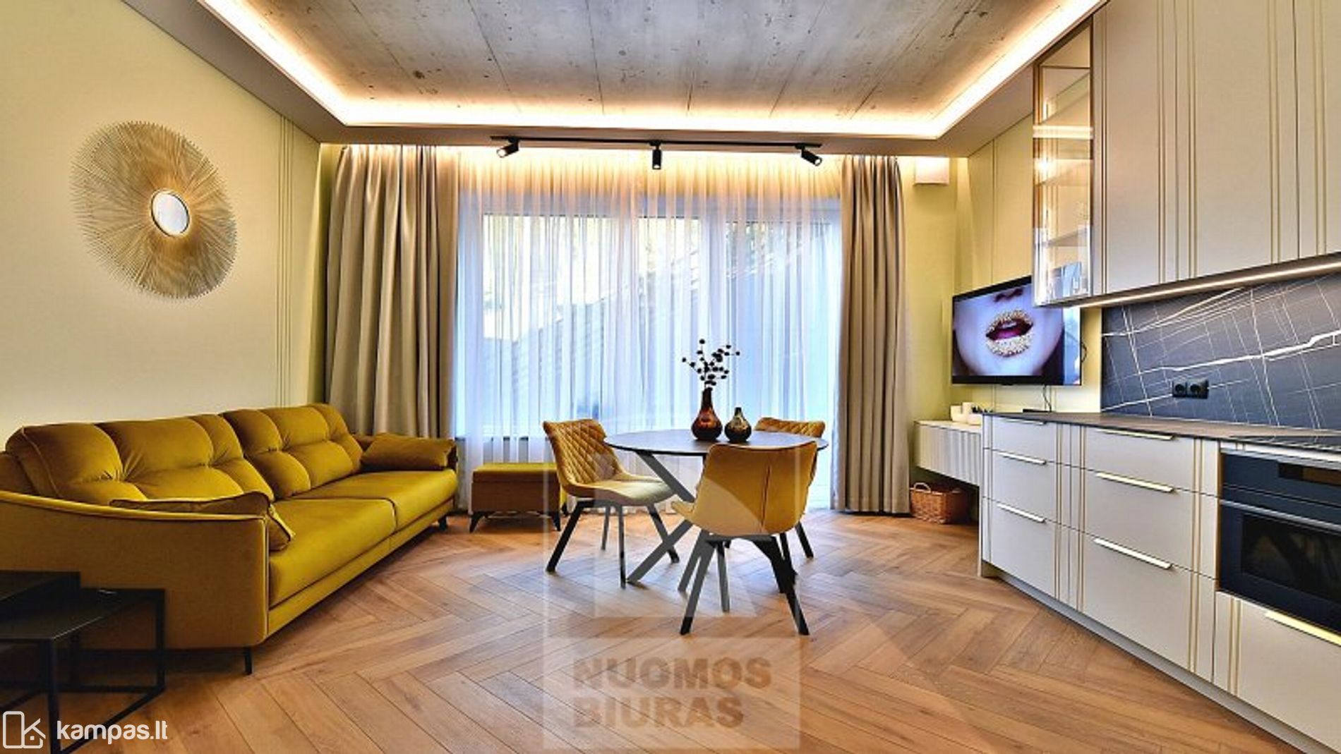 • Svetainė sujungta su moderniai įrengta virtuve, išėjimas į terasą.