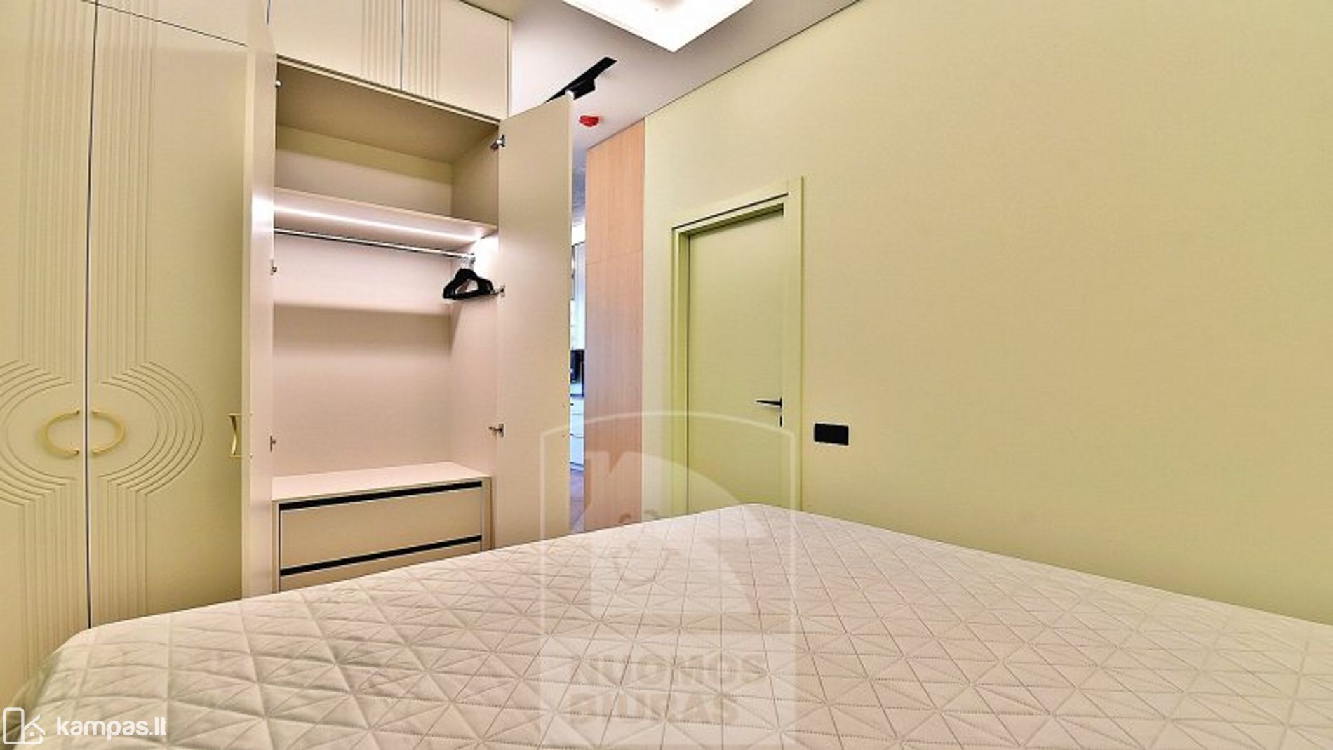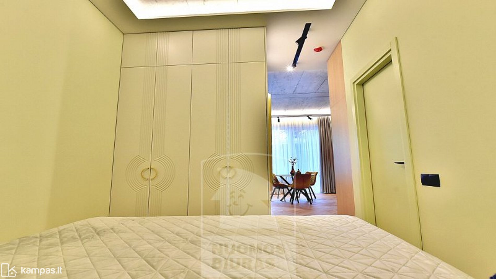 • Integruotos erdvios talpios su išfrezuotu dekoru spintos su vidaus apšvietimu prieškambaryje ir miegamajame.
