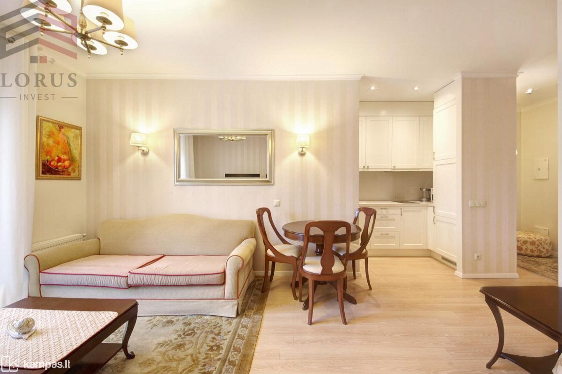 Butas nuomojamas su visa būtina buitine technika ir baldais, už papildomą mokestį gali būti išnuomota privati požeminė parkavimo vieta.