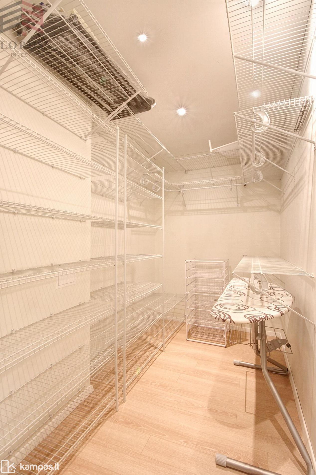 ⏺ Apie 5 kv. m. įeinama drabužinė su daugybe lentynų bei vietų pakabams;
