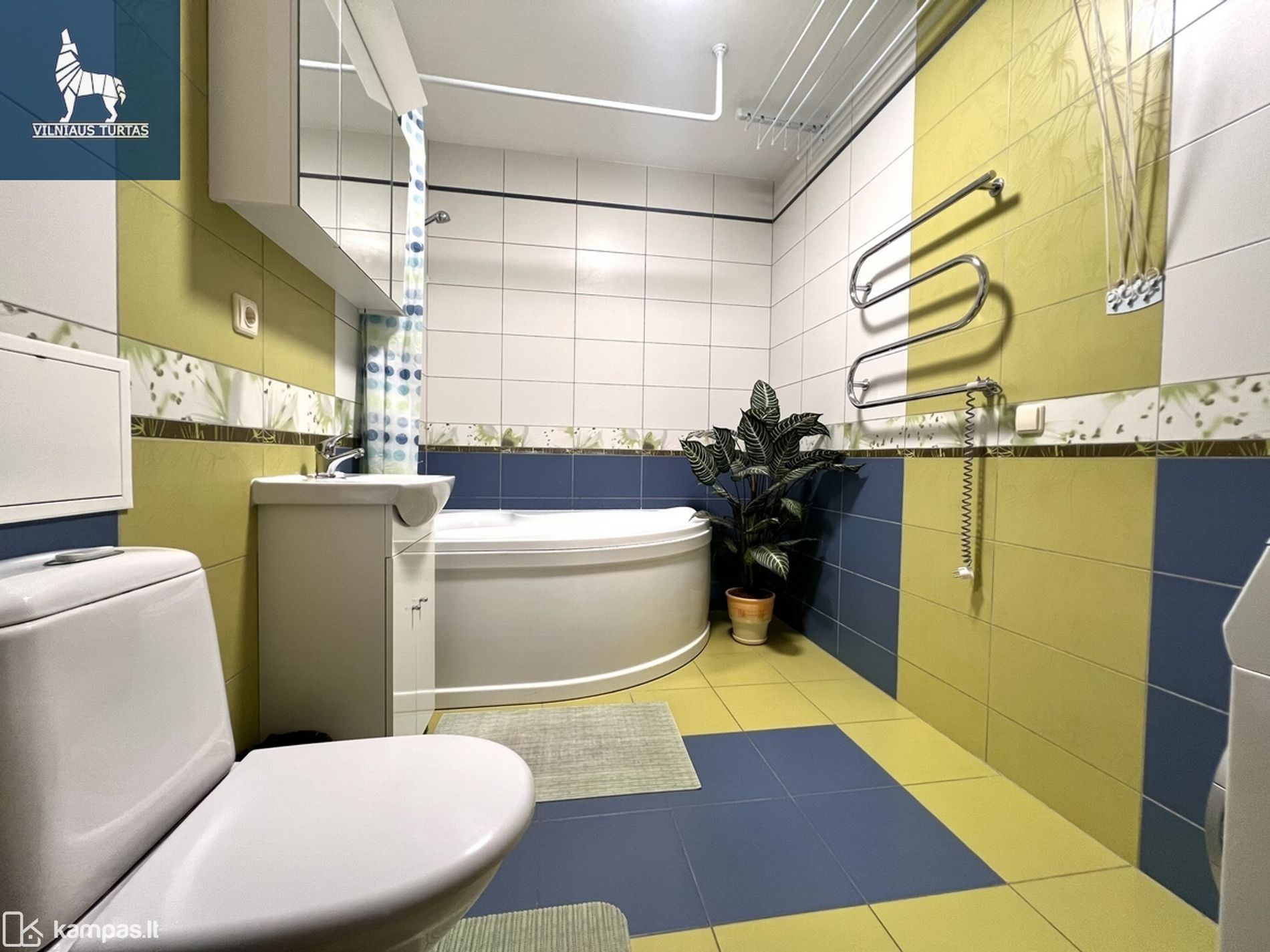 - Erdvus vonios kambarys; yra gyvatukas