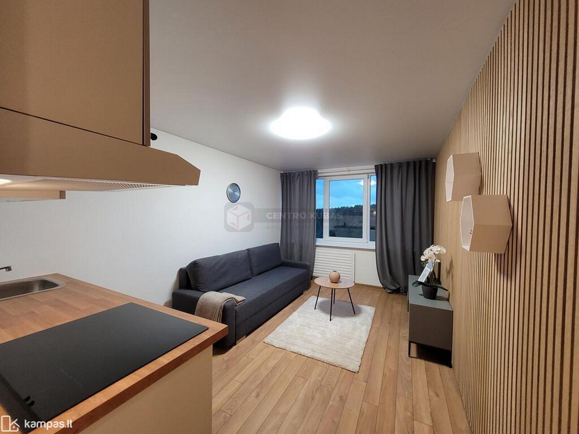 - Kambarys-virtuvė - 12.86 kv.m;