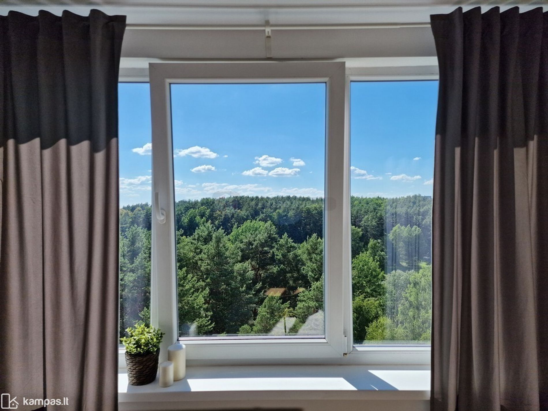Lengvas, skoningas, neapkrautas buto dizainas. Sienų apdaila su garsą izoliuojančia medžiaga. Pro langus atsiveria gražus žaliuojantis vaizdas.