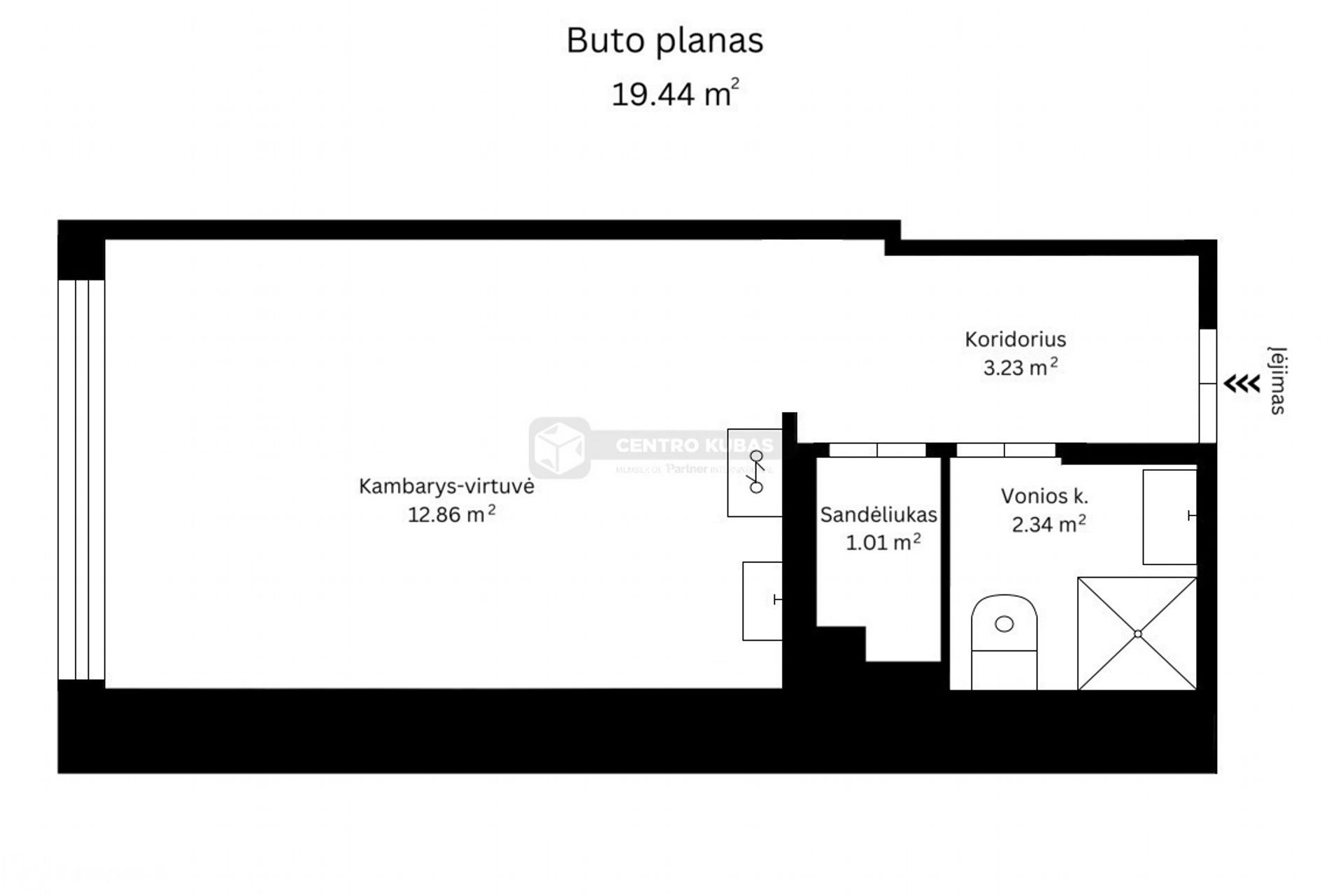 - Bendras plotas - 19.44 kv.m;