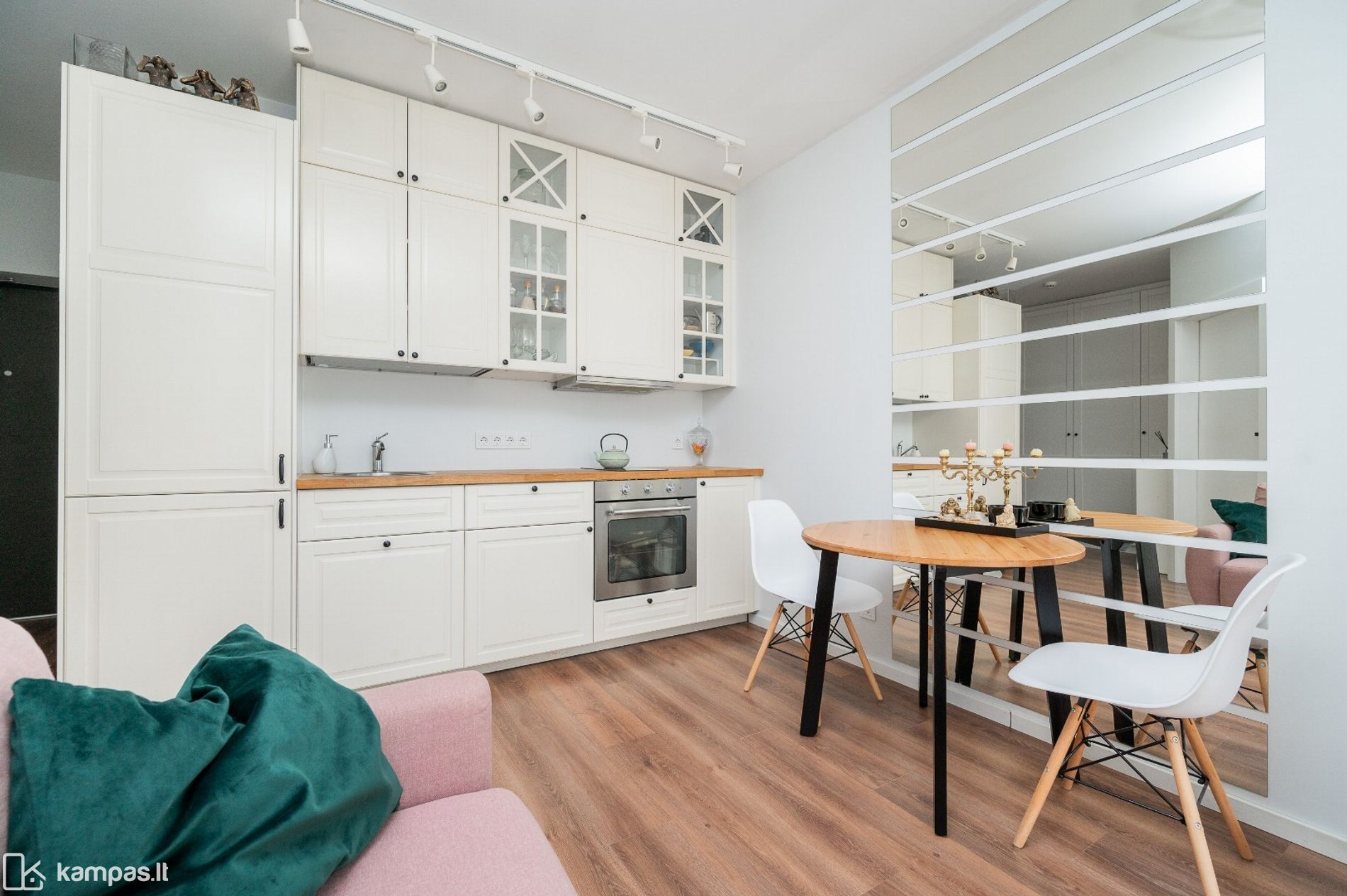 • Funkcionalus ir patogus išplanavimas - svetainė sujungta su virtuve bei atskirta miegamojo zona .