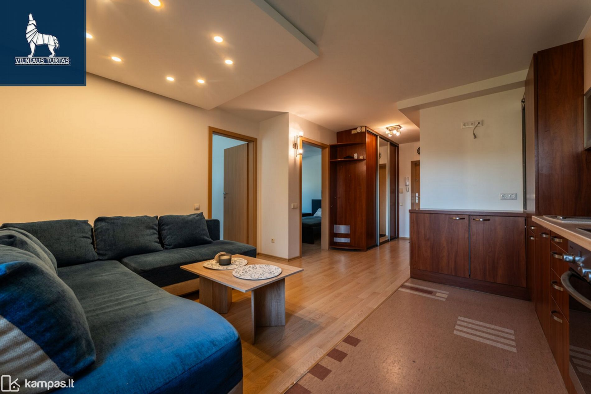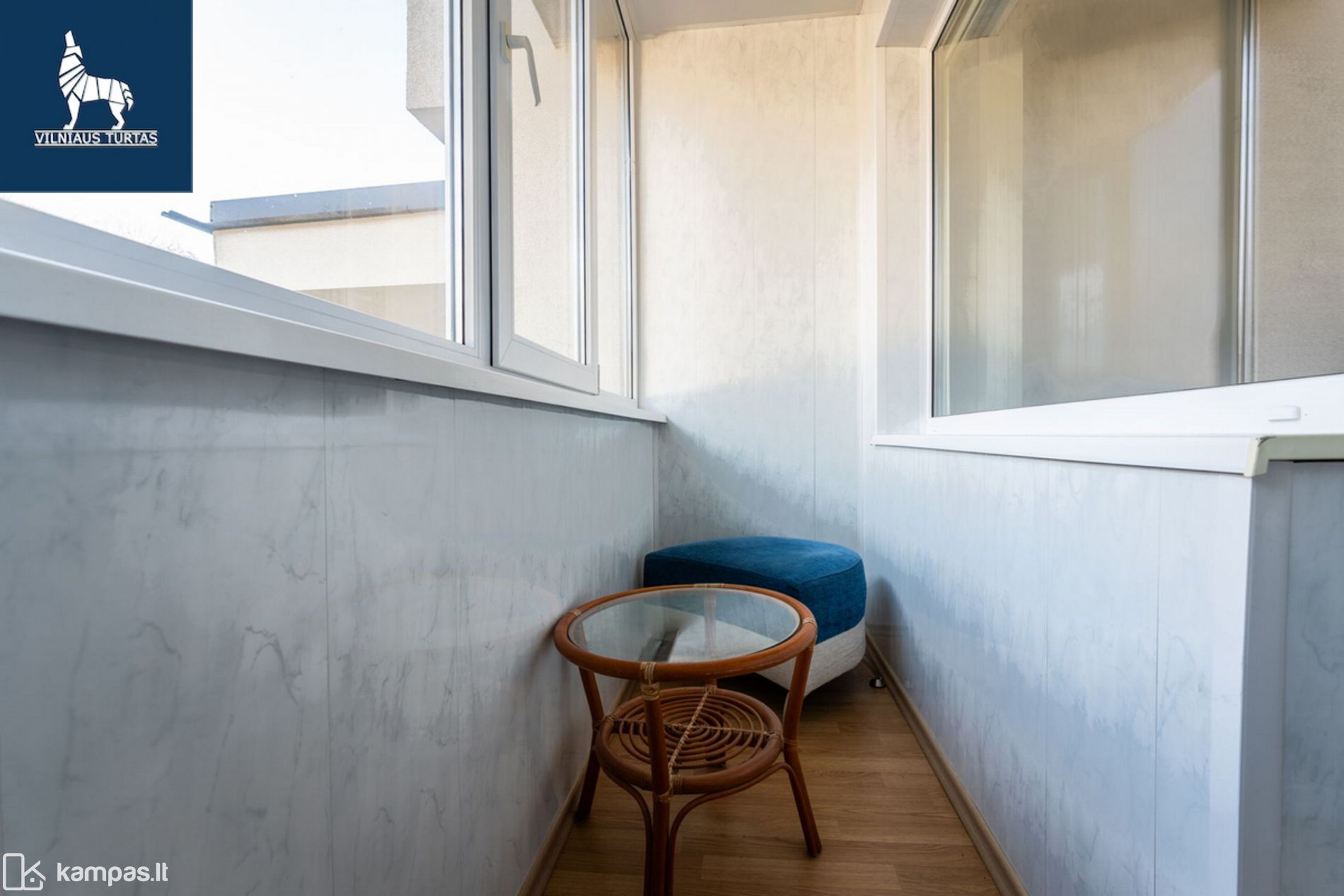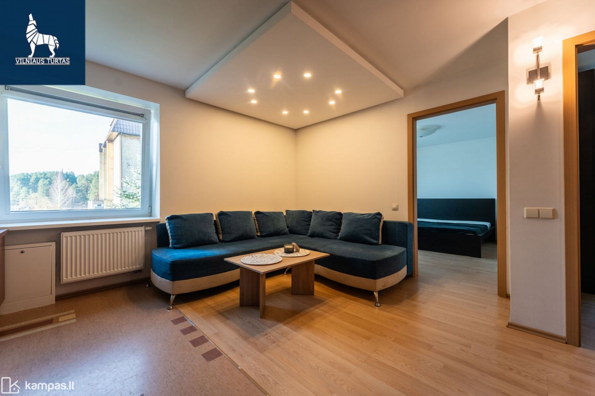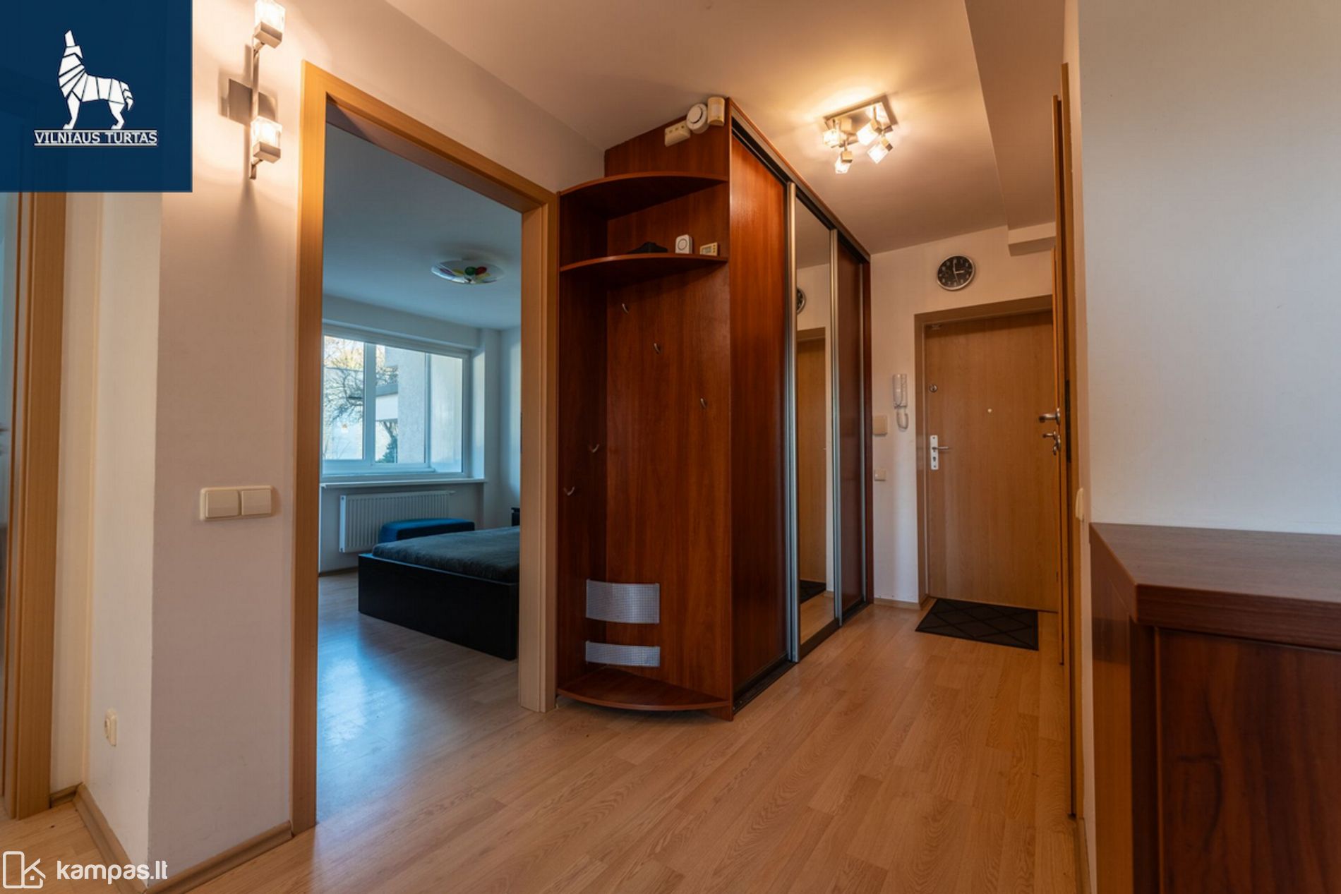 Išnuomojamas šiltas ir ekonomiškas 47 kv. m butas renovuotame name, apsuptame žalumos, netoli Neries upės. Butas yra pirmajame, tačiau pakeltame aukšte – todėl pro langus matosi žaluma, išlieka privatumas, o laiptais lipti tereikia kelis žingsnius. Erdvė suplanuota patogiam gyvenimui: svetainė sujungta su virtuve, du atskiri miegamieji ir išėjimas į balkoną. Bute įrengti visi reikalingi baldai bei buitinė technika – galima iš karto įsikelti ir gyventi.
