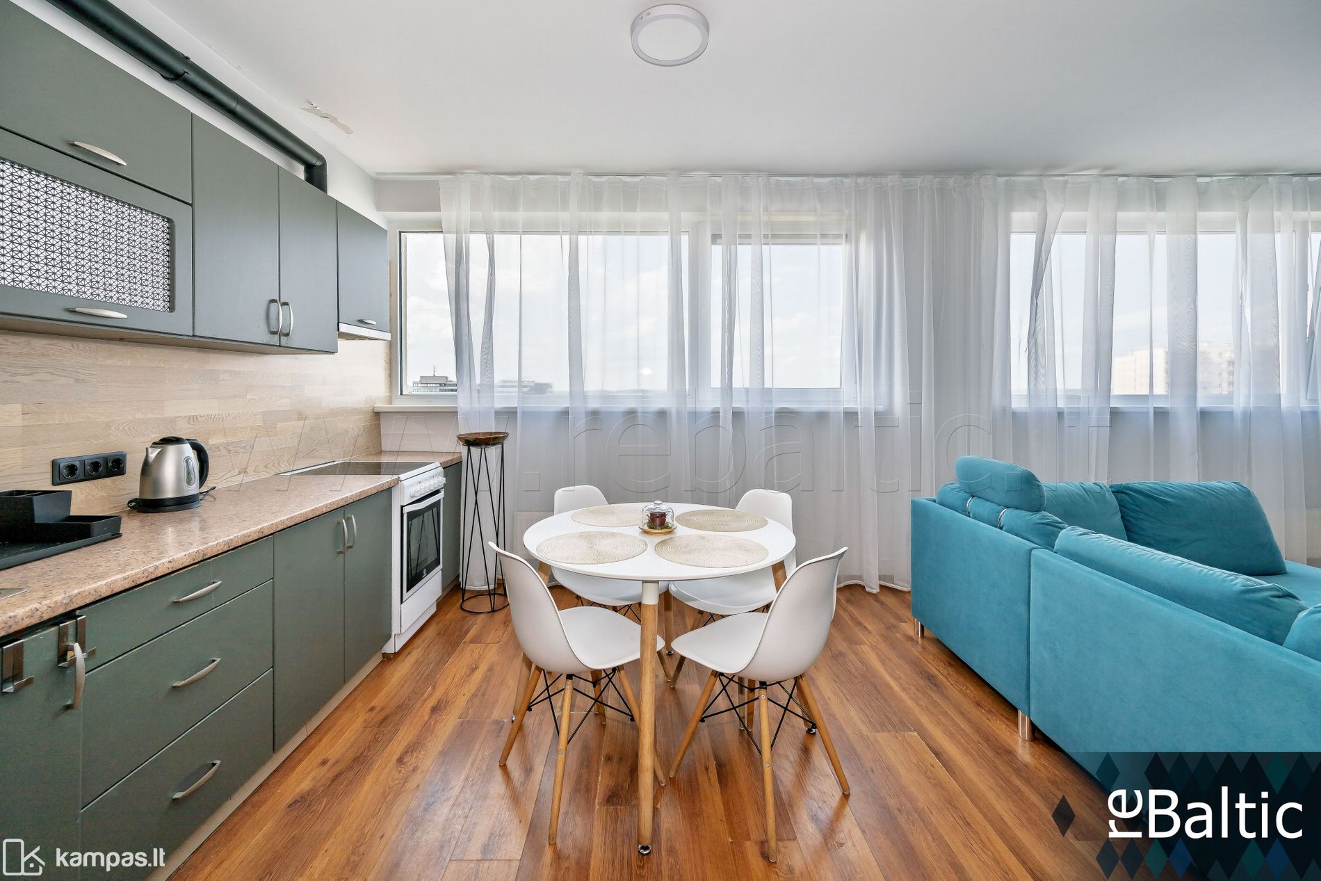 A cozy and bright, well-furnished three-room apartment is available for rent on Vėtrungių Street.