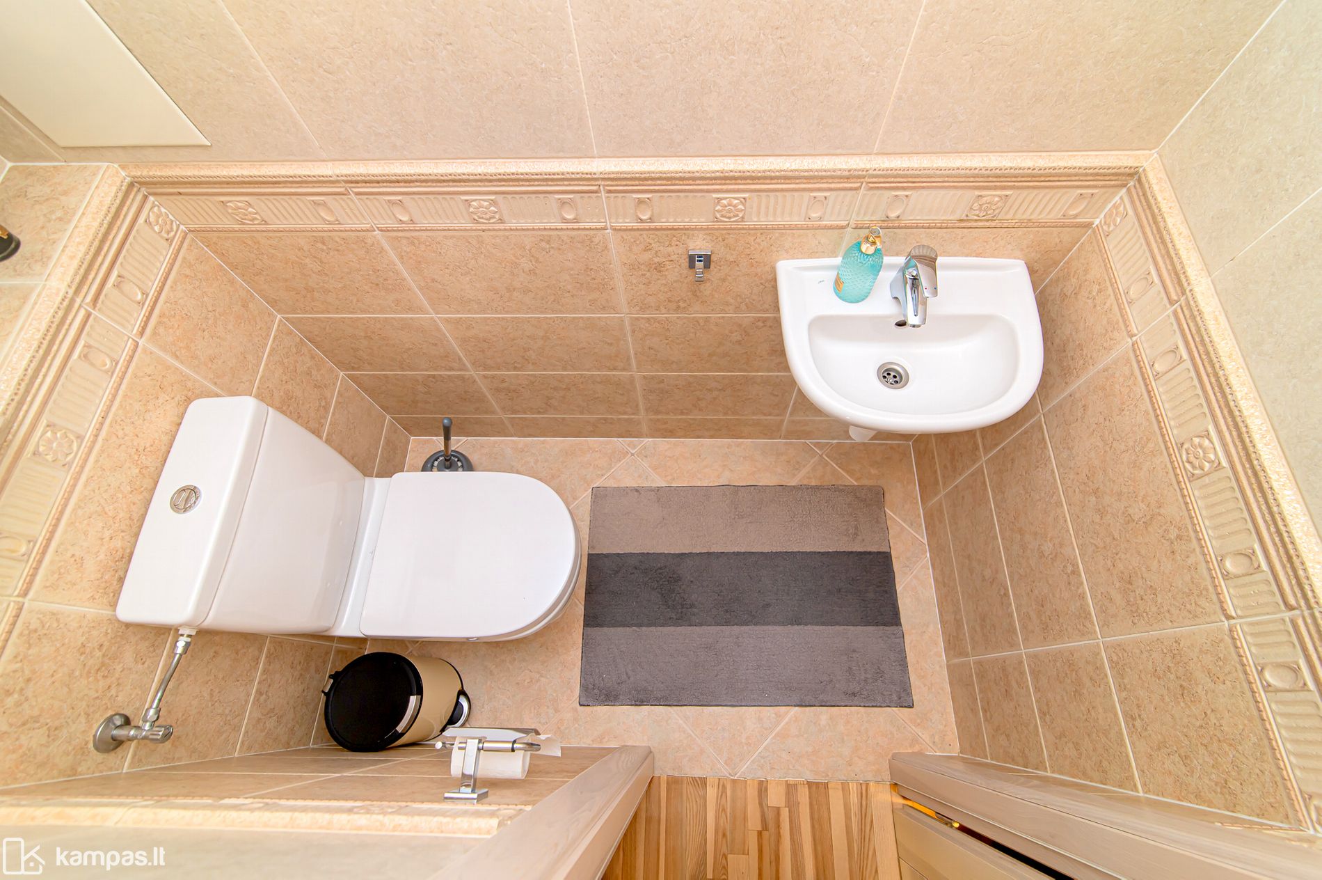 Atskira vonia ir tualetas su talpiomis sieninėmis spintelėmis;