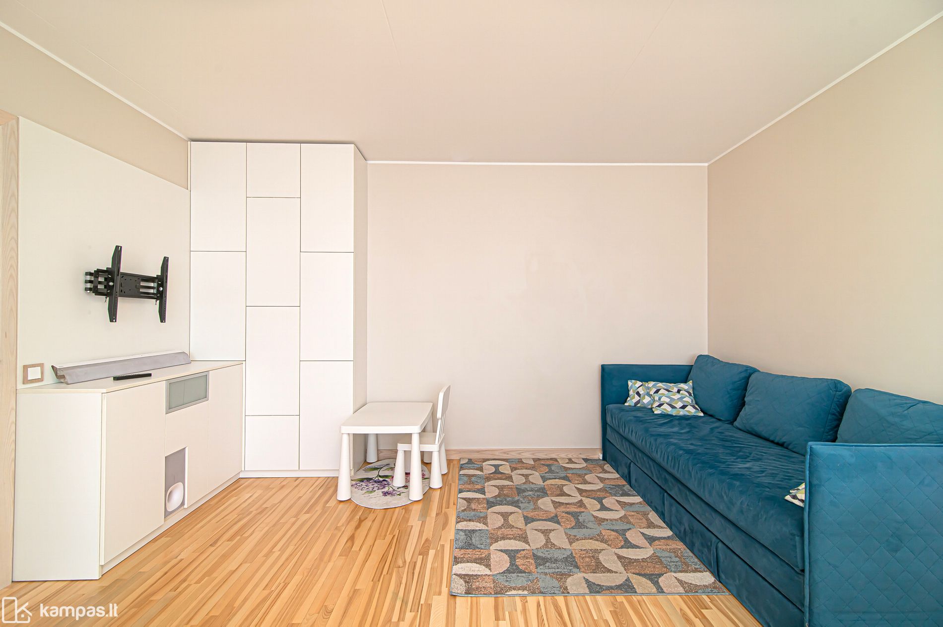 Išnuomojamas šviesus ir jaukus 3 kambarių butas mūriniame 2003 m. statybos name, tvarkingame ir žaliame rajone su vaikų žaidimų aikštelėmis, krepšinio ir tinklinio aikštelėmis.