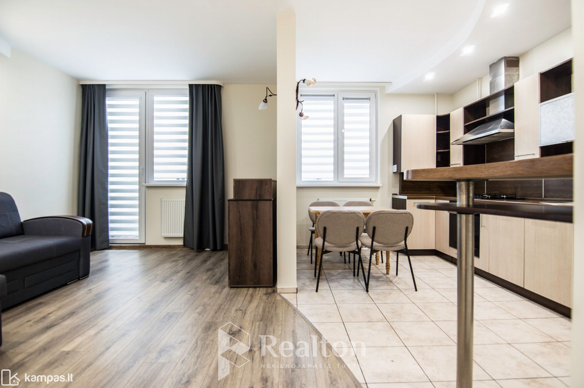 -- Virtuvė ir svetainė bendroje erdvėje