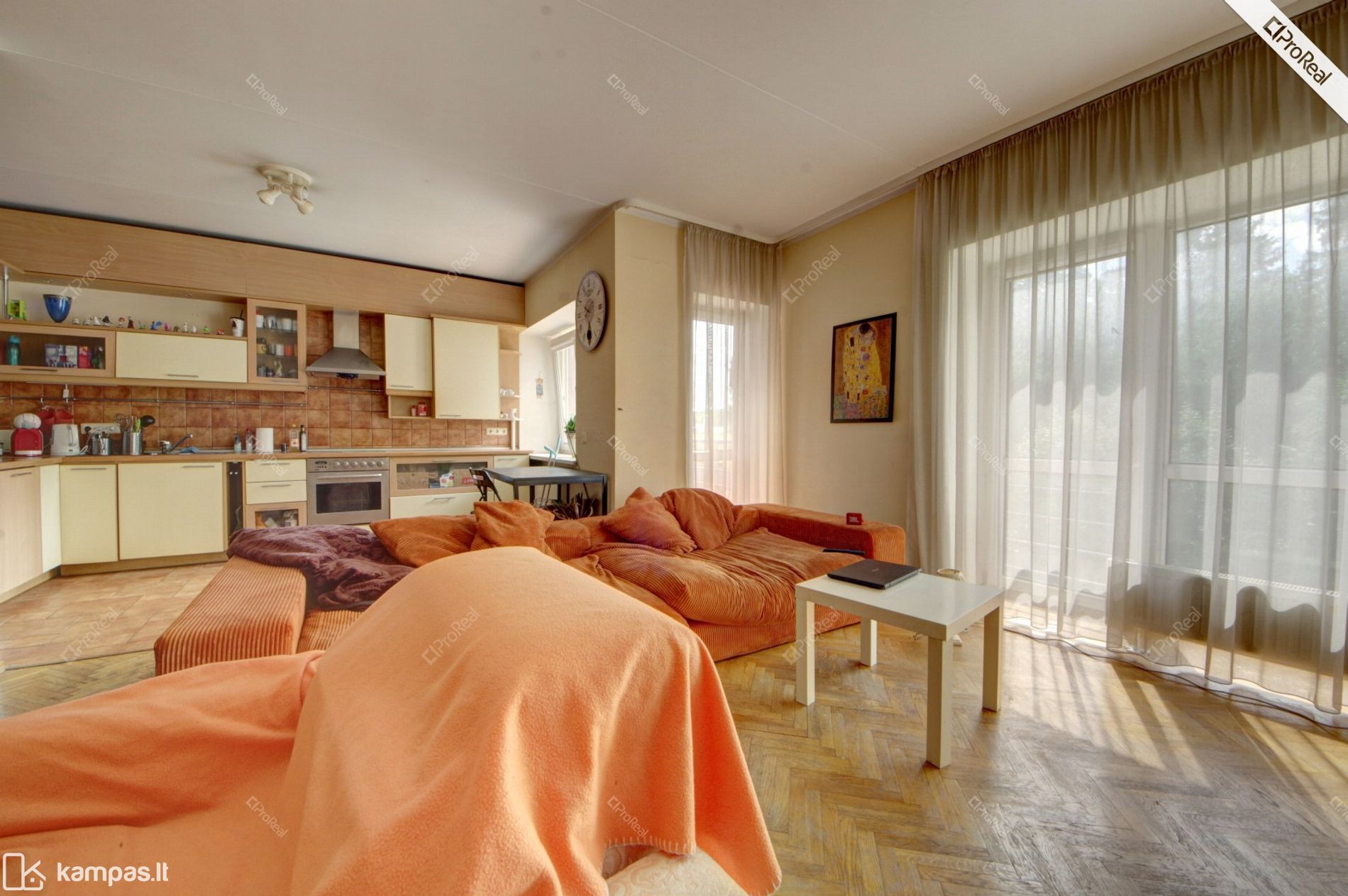 Visorių g., 3 aukštas iš 5, 65 kv.m., 2005 m. Mūrinis, Svetainė ir virtuvė kartu, balkonas, vonia ir tualetas atskirai,židinys.