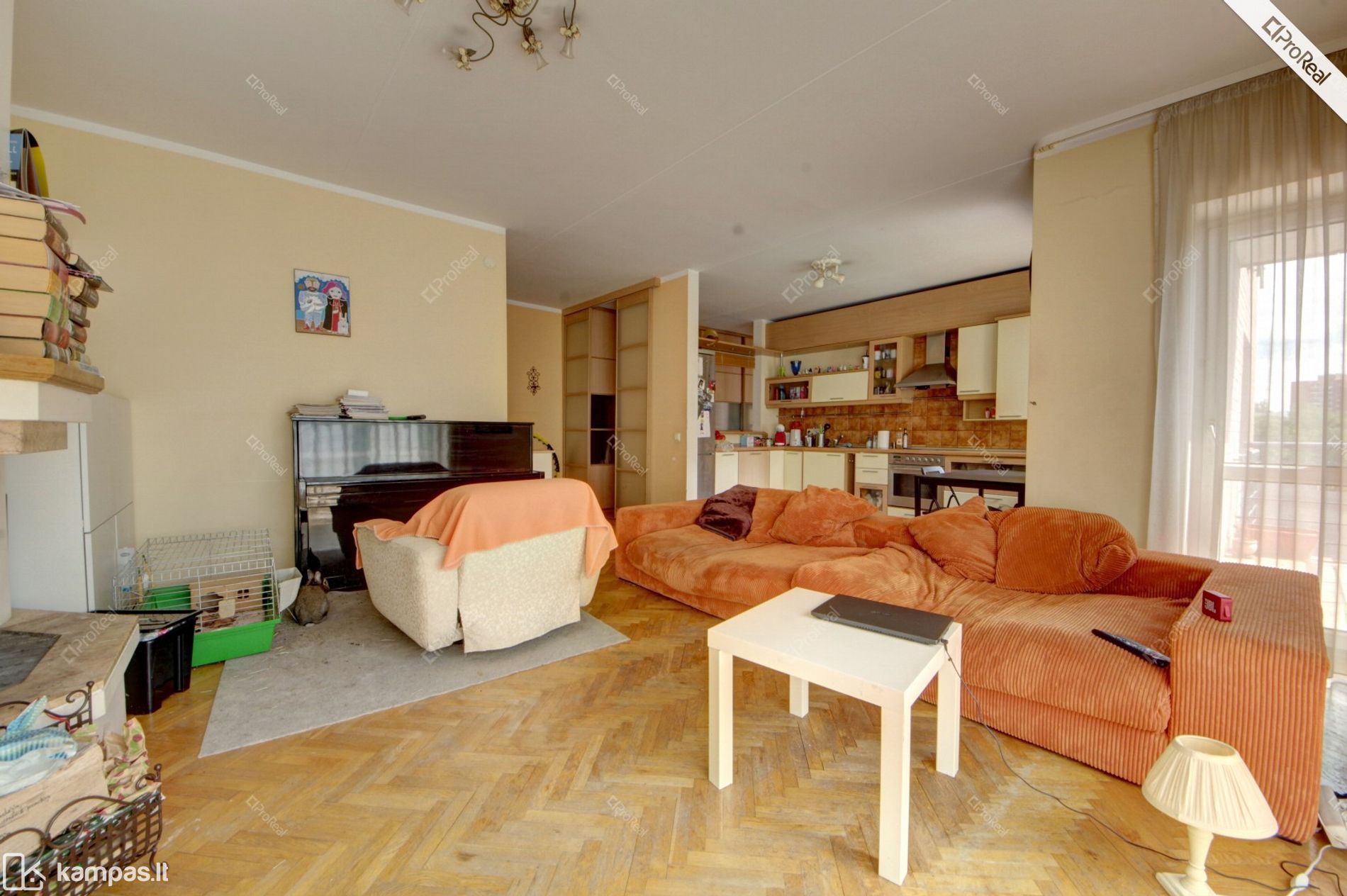 Visorių g., 3 aukštas iš 5, 65 kv.m., 2005 m. Mūrinis, Svetainė ir virtuvė kartu, balkonas, vonia ir tualetas atskirai,židinys.