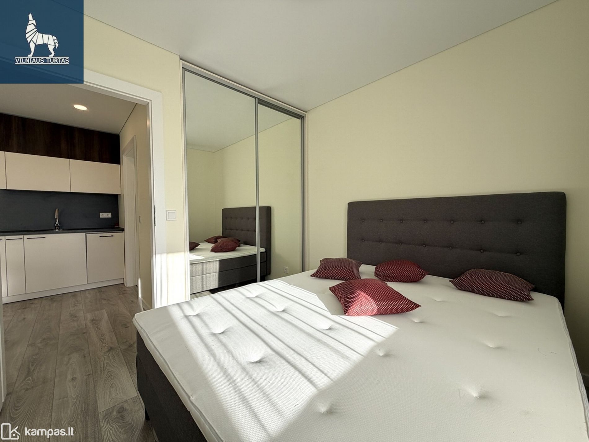 • Patogus išplanavimas: miegamasis kambarys, erdvi svetainė su išėjimu į 9 kv.m. lodžiją