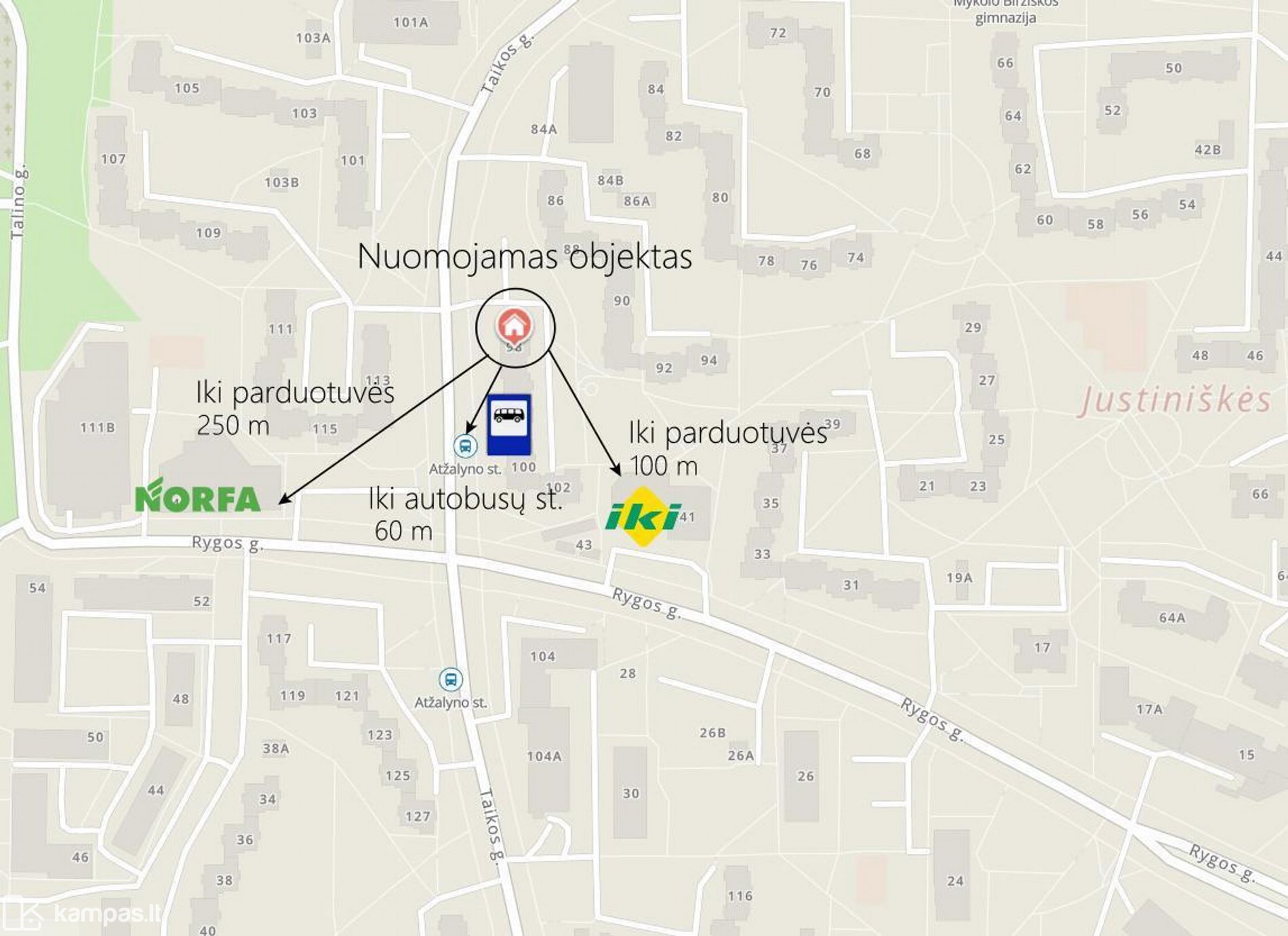 Artimiausia autobusų stotelė Atžalyno vos už 60 m. Jūsų patogumui visai šalia vos už 100 m parduotuvė „Iki“, o už 250 m parduotuvė „Norfa“.