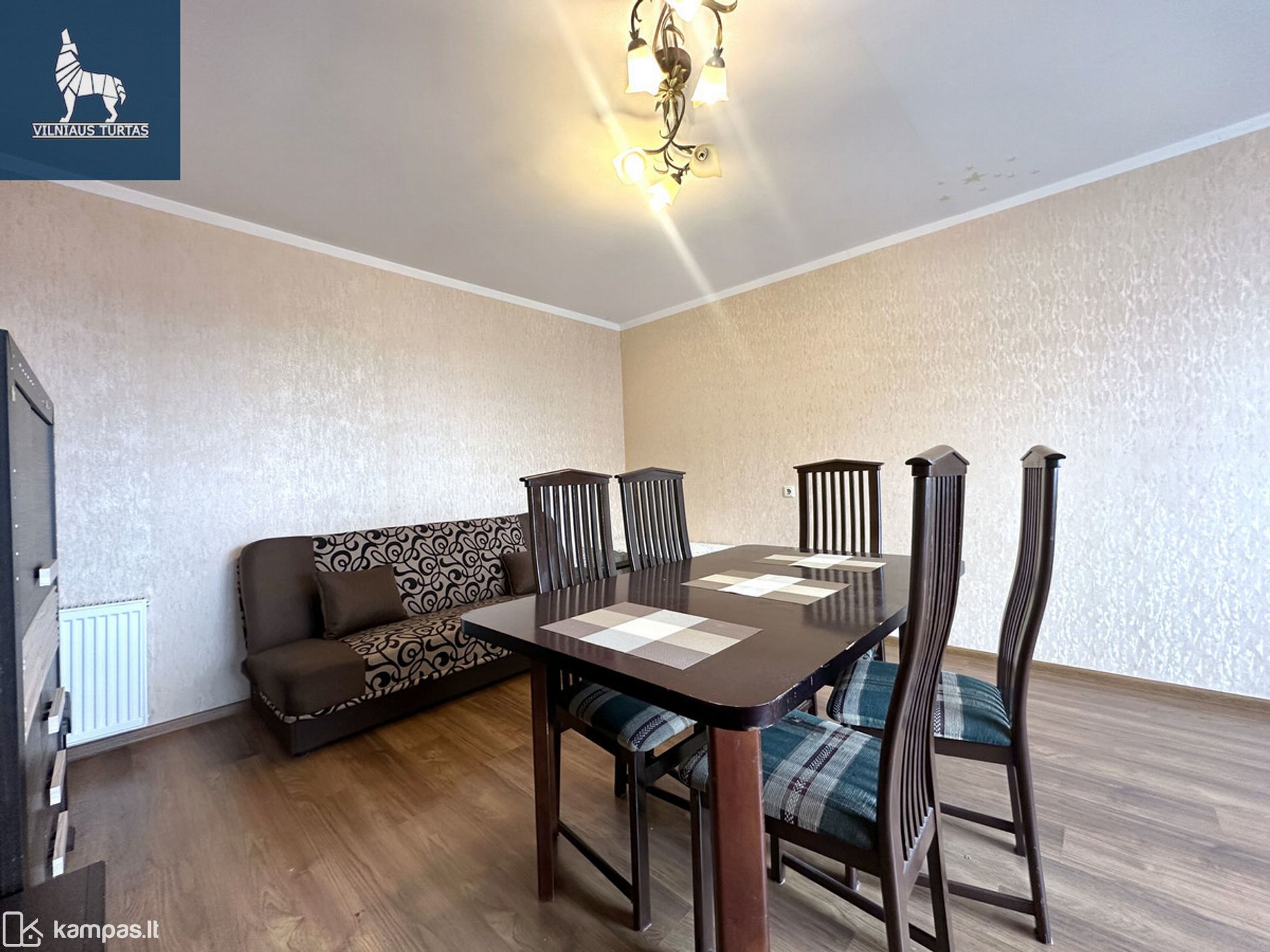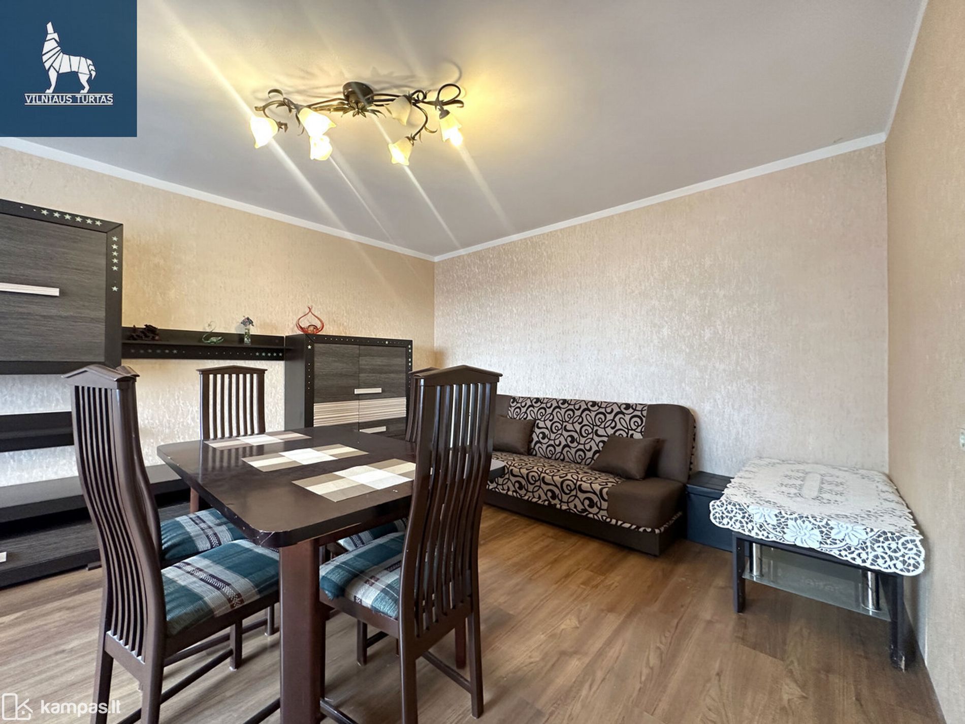 Kambarys 2: sofa-lova, sekcija, stalas, valgomasis stalas.