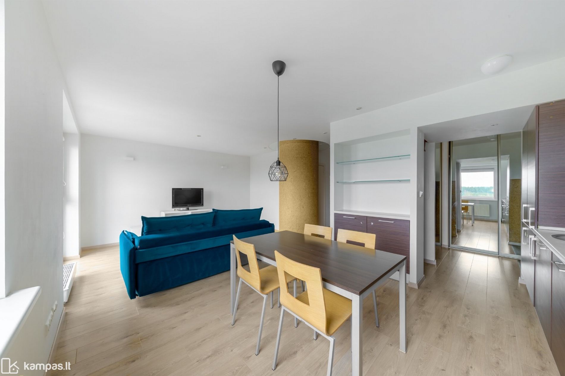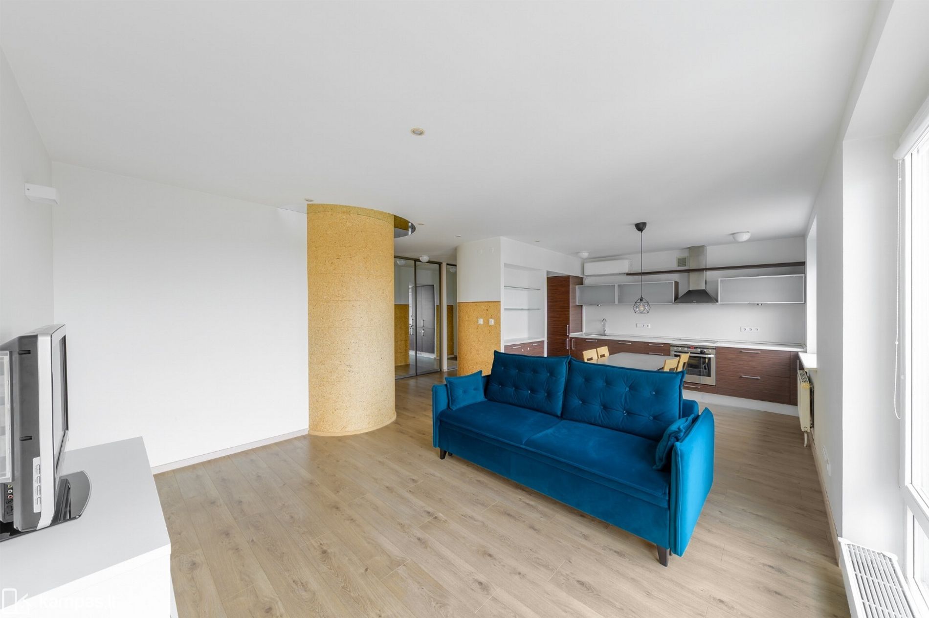 - Patogus išplanavimas: erdvi virtuvės ir svetainės zona, jaukus miegamasis su didele spinta jame, didelis vonios kambarys;