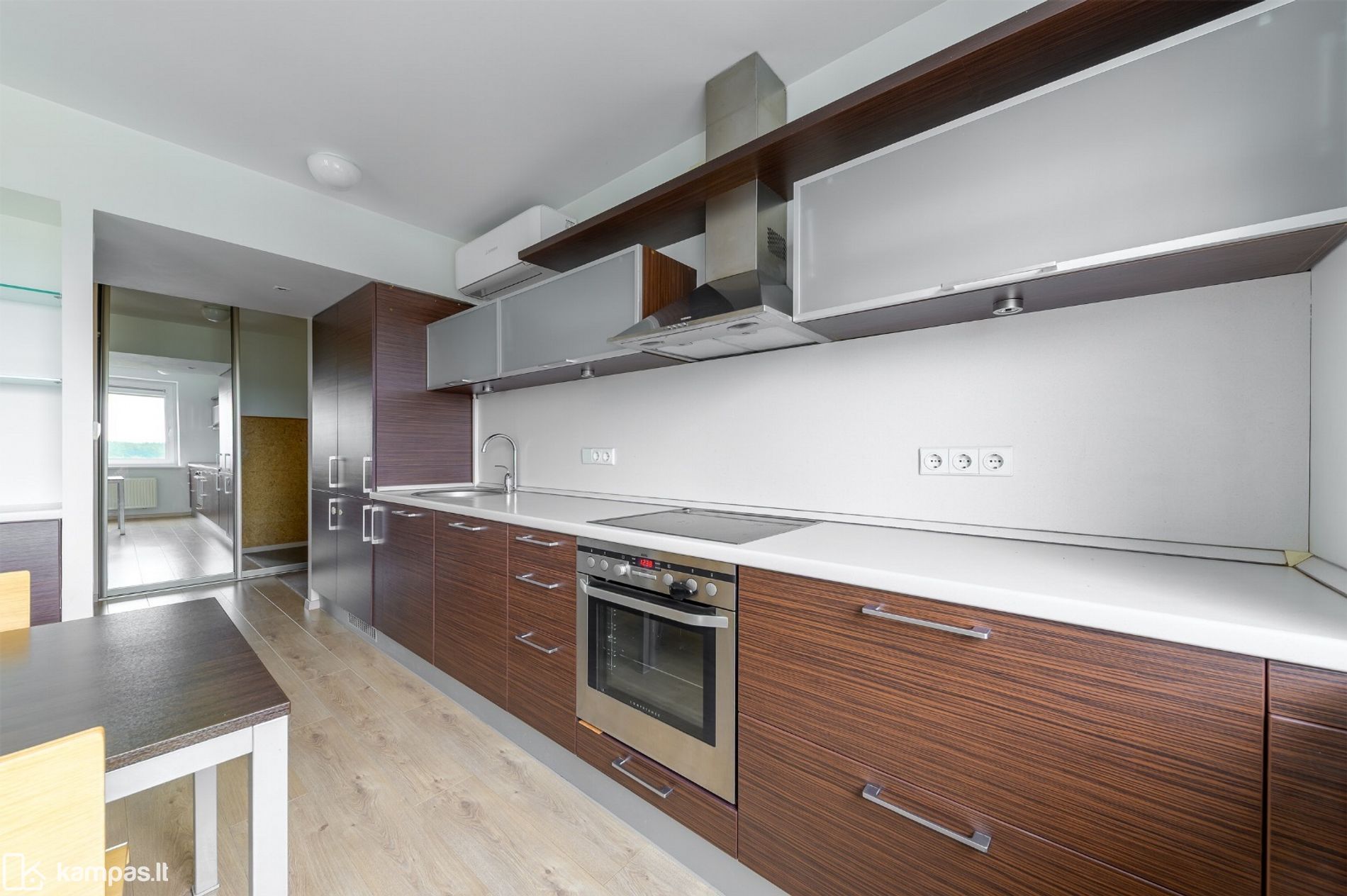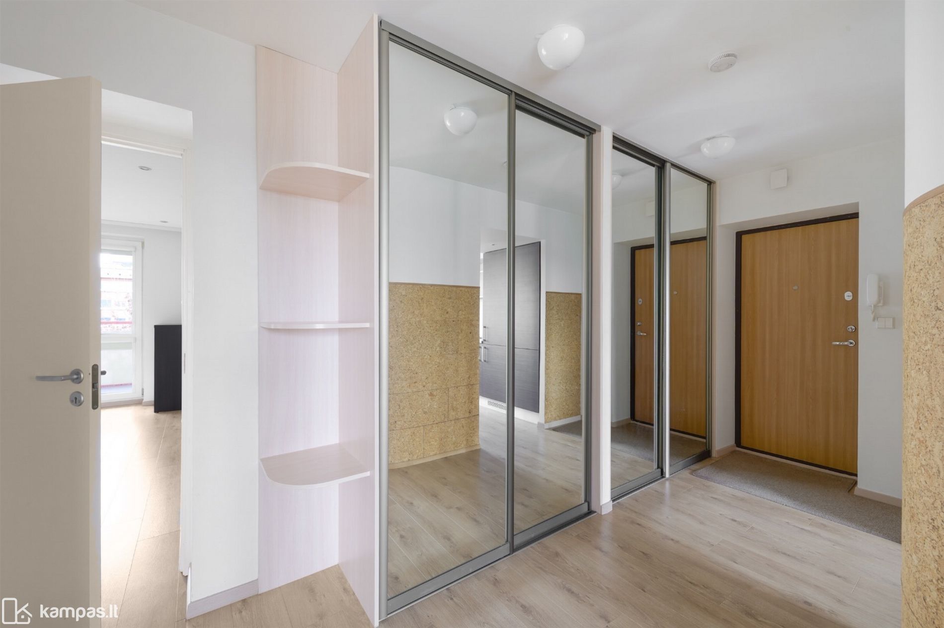- Daug vietos daiktams (koridoriuje ir miegamojo kambaryje didelės sieninės spintos);