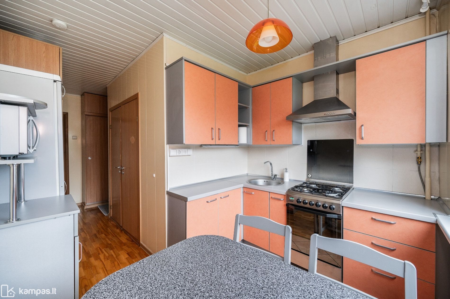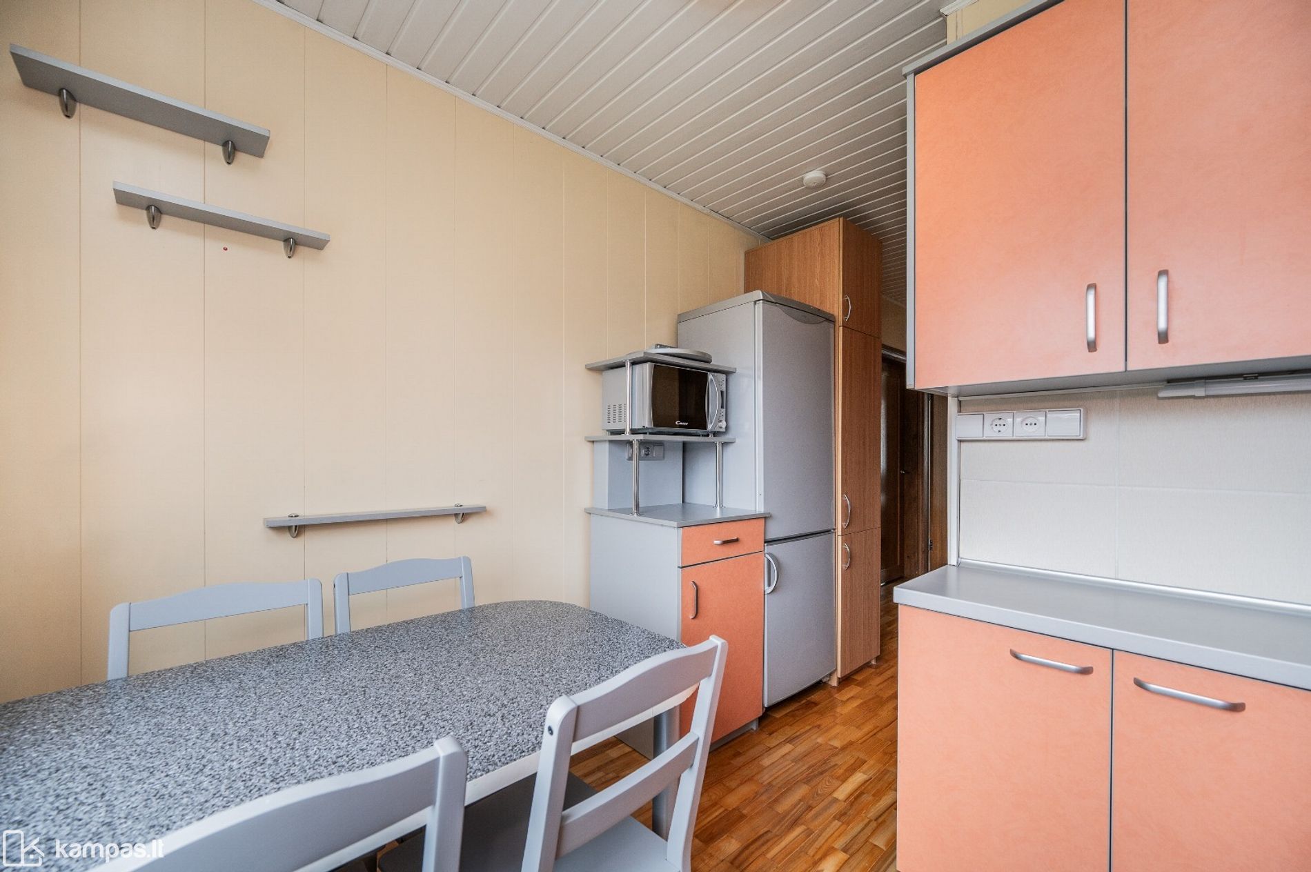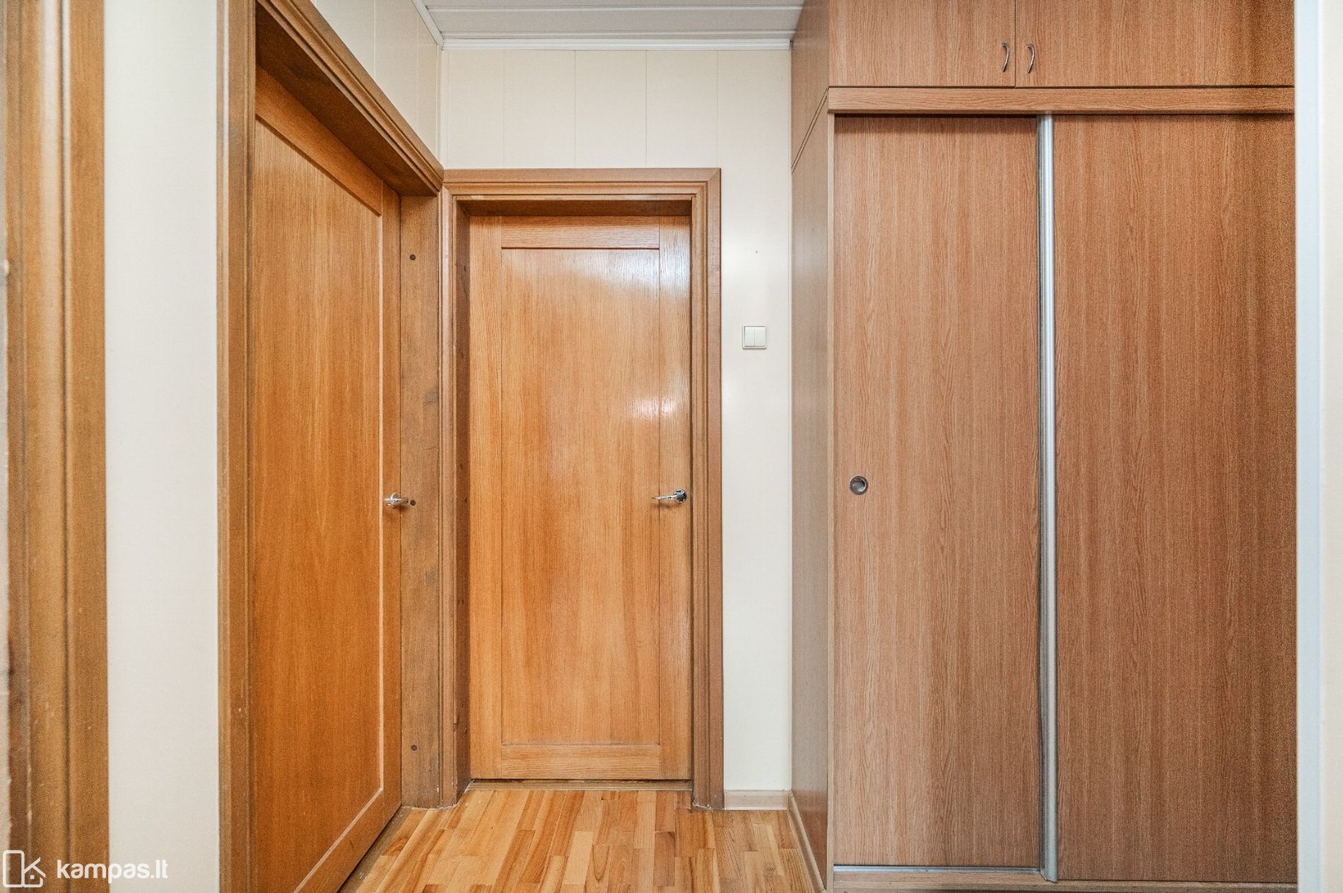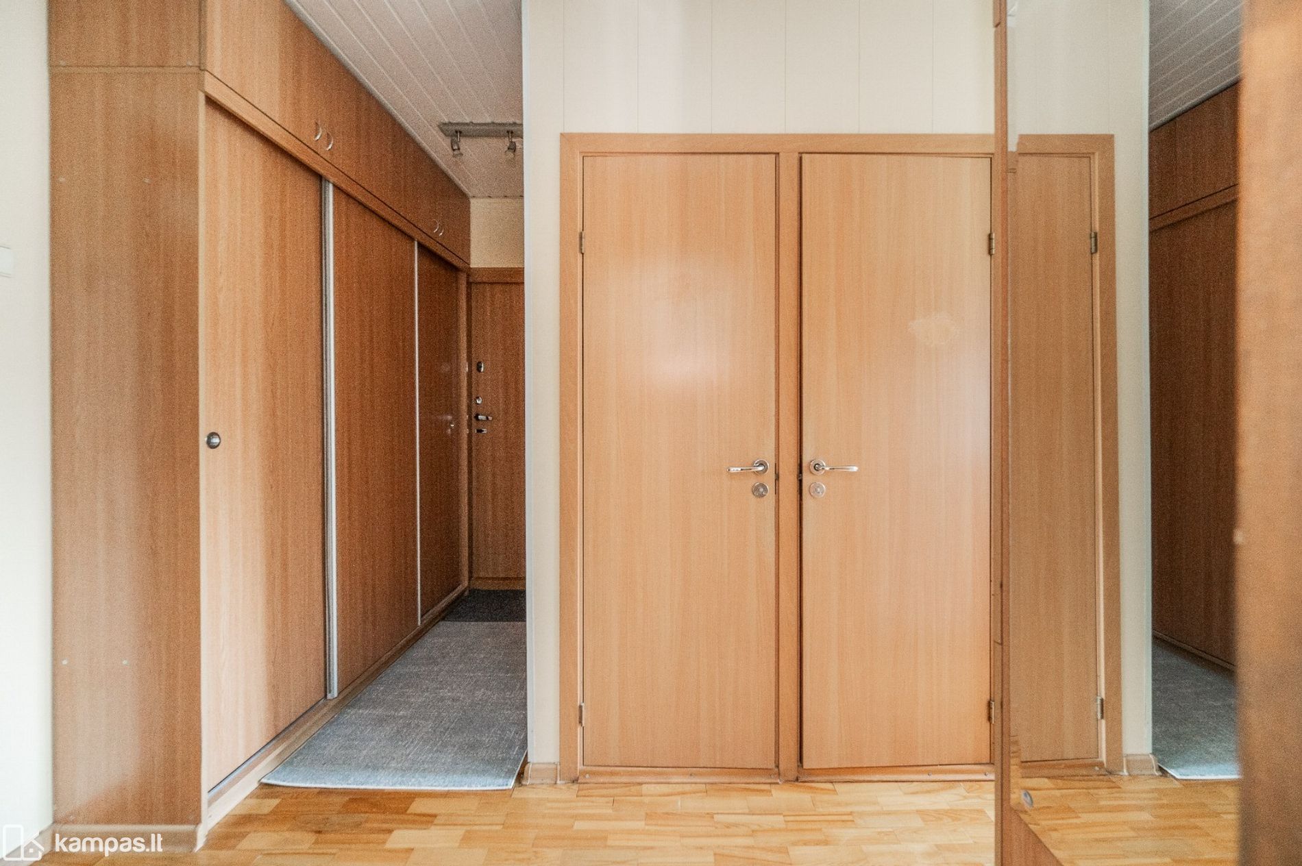 • Grindys: kambariuose – natūralaus medžio parketas, virtuvėje ir sanitariniuose mazguose – plytelės;