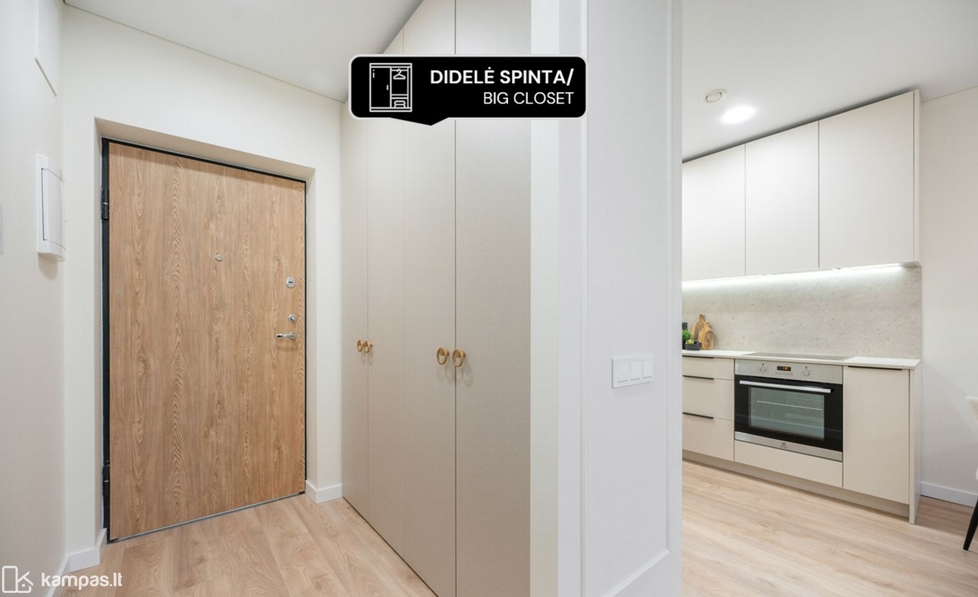 • Yra 2 DIDELĖS SPINTOS - prieškambario spinta ir miegamajame kambaryje