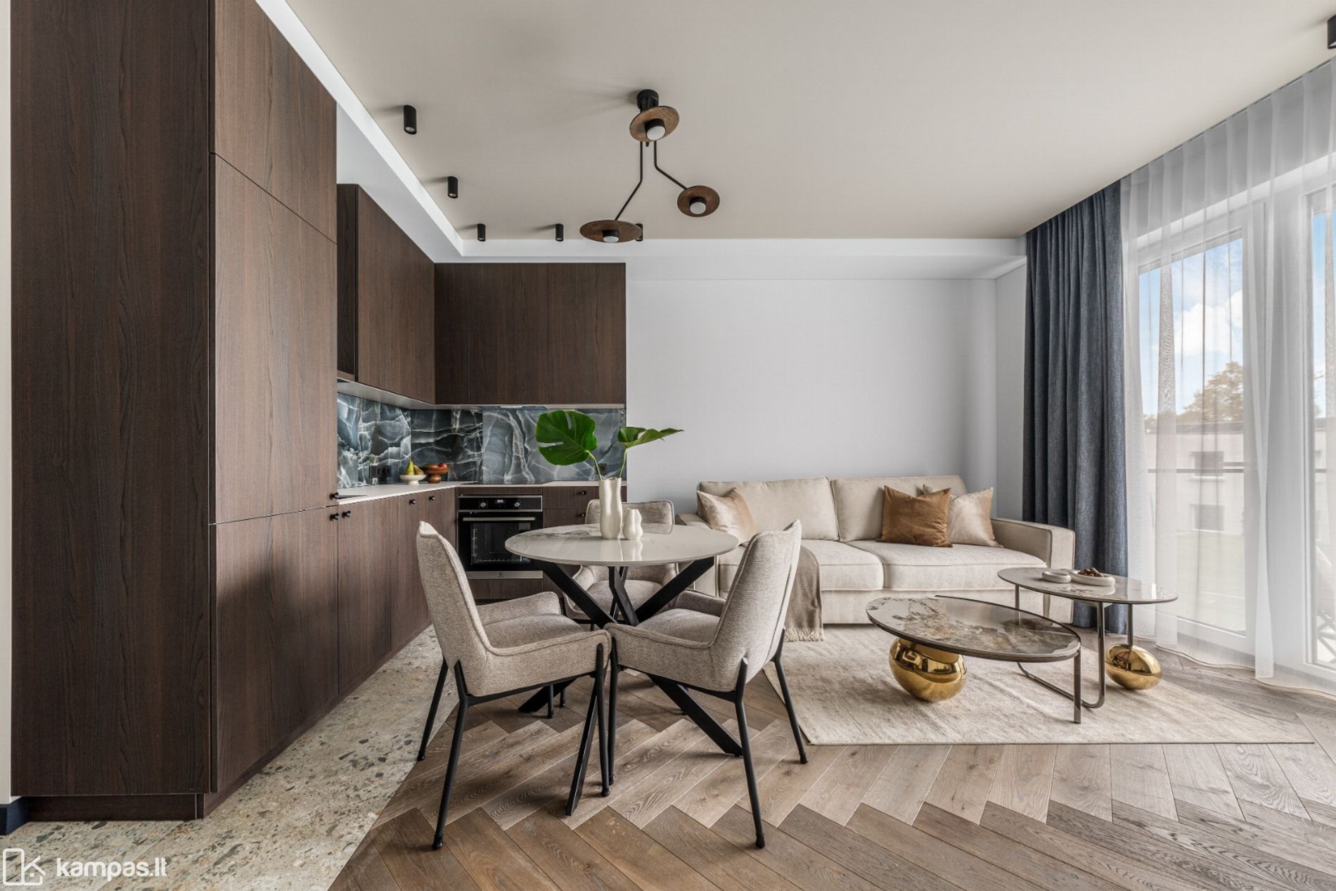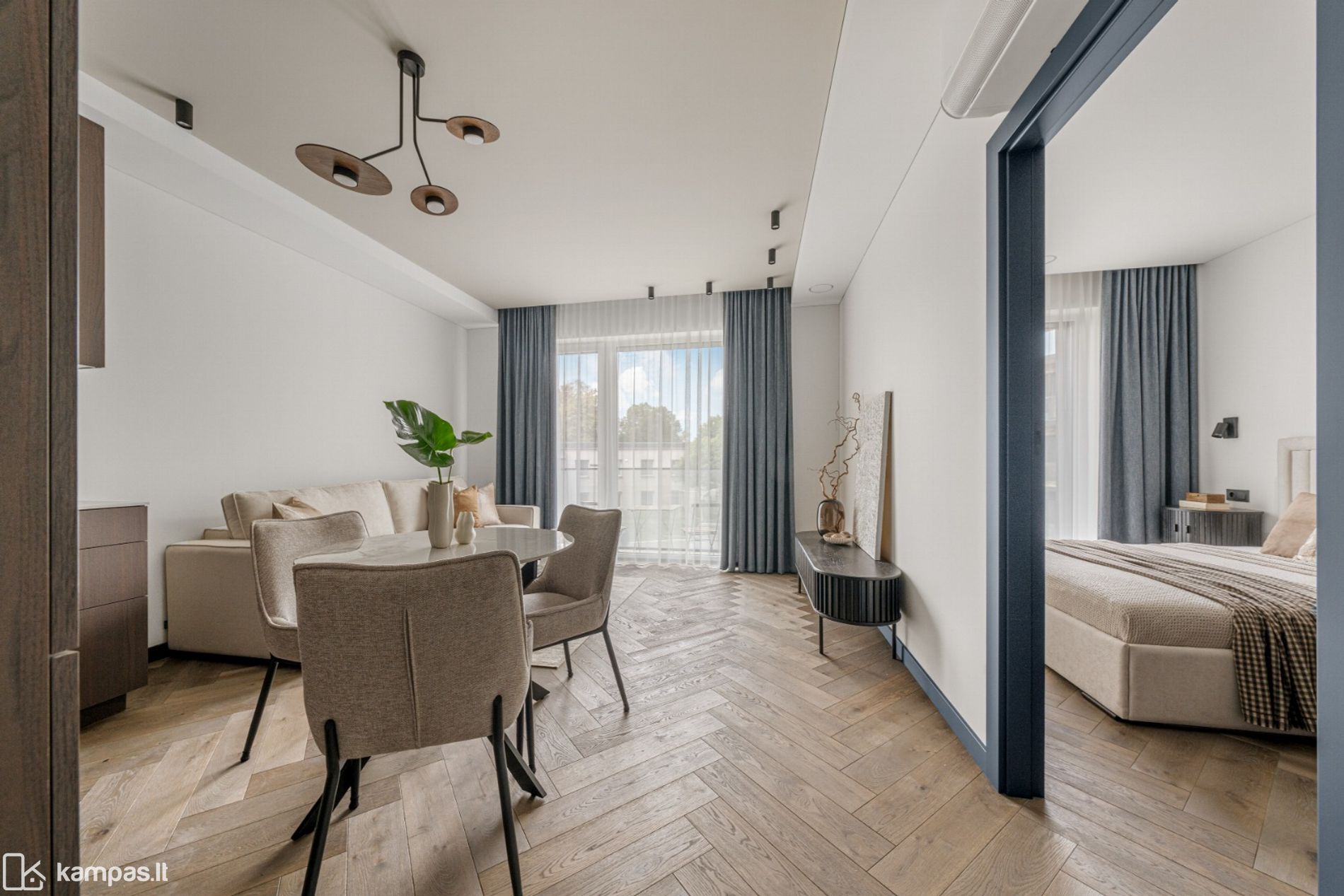 • Išplanavimas: 1 miegamasis kambarys, svetainė su virtuve, vonia + wc, erdvus balkonas