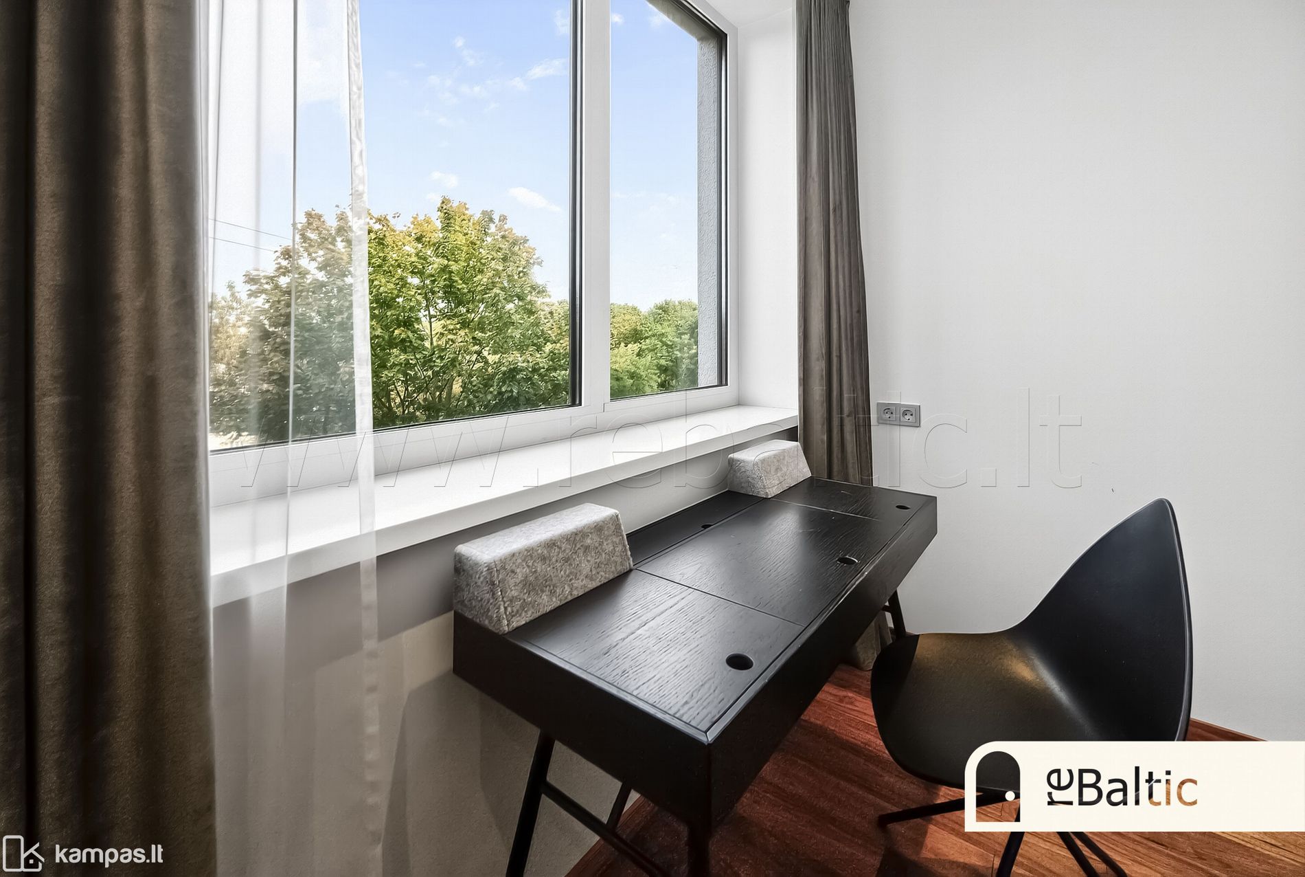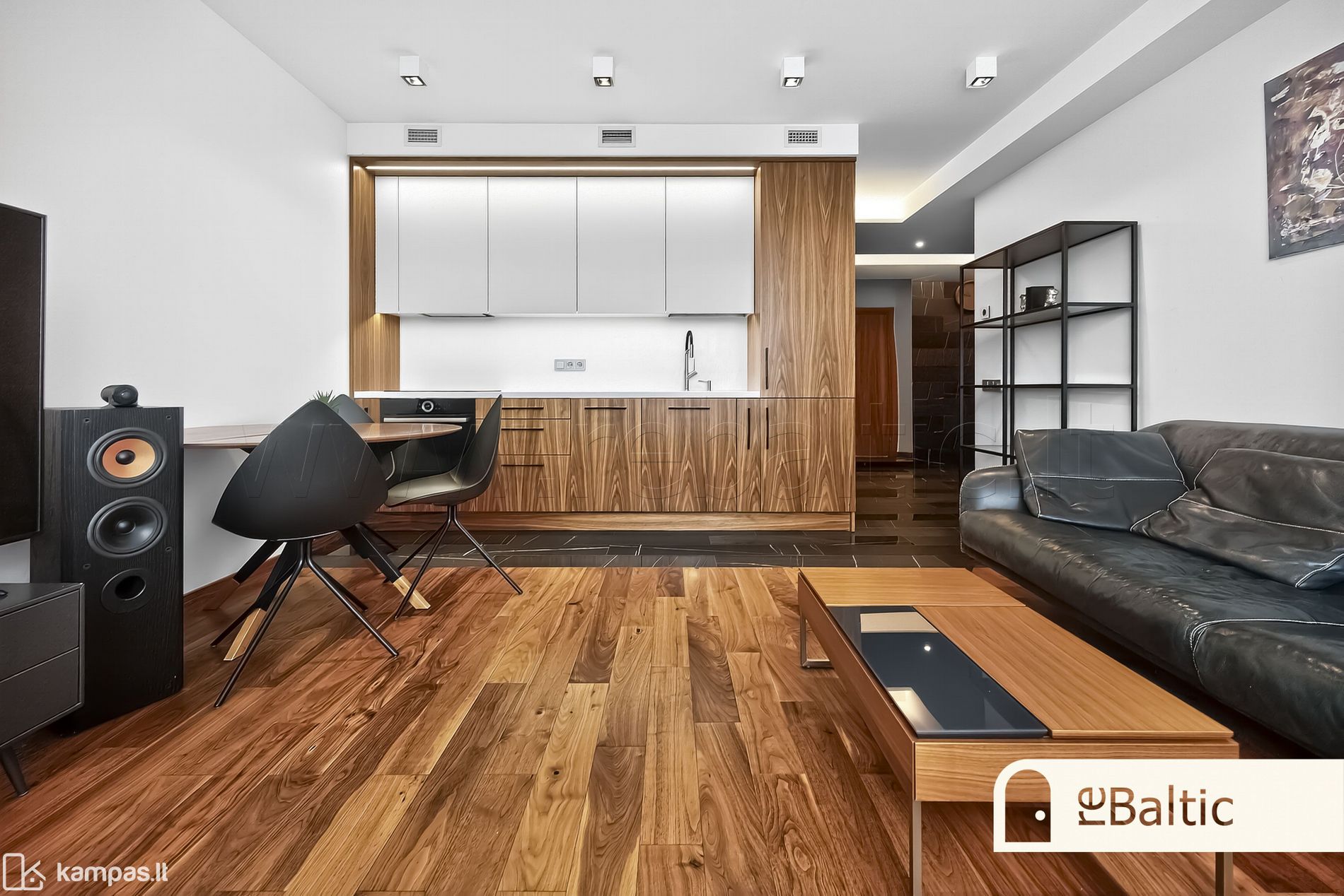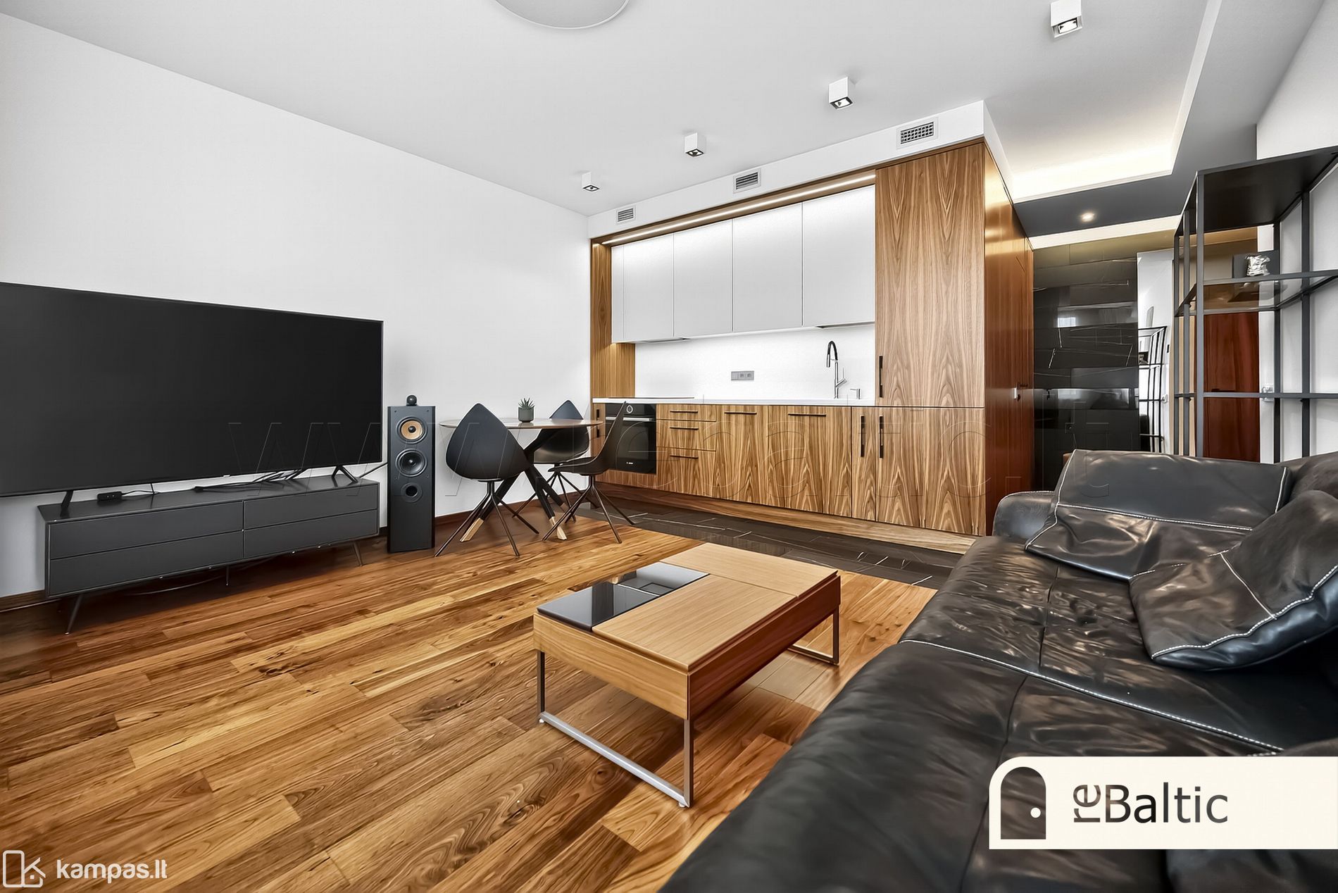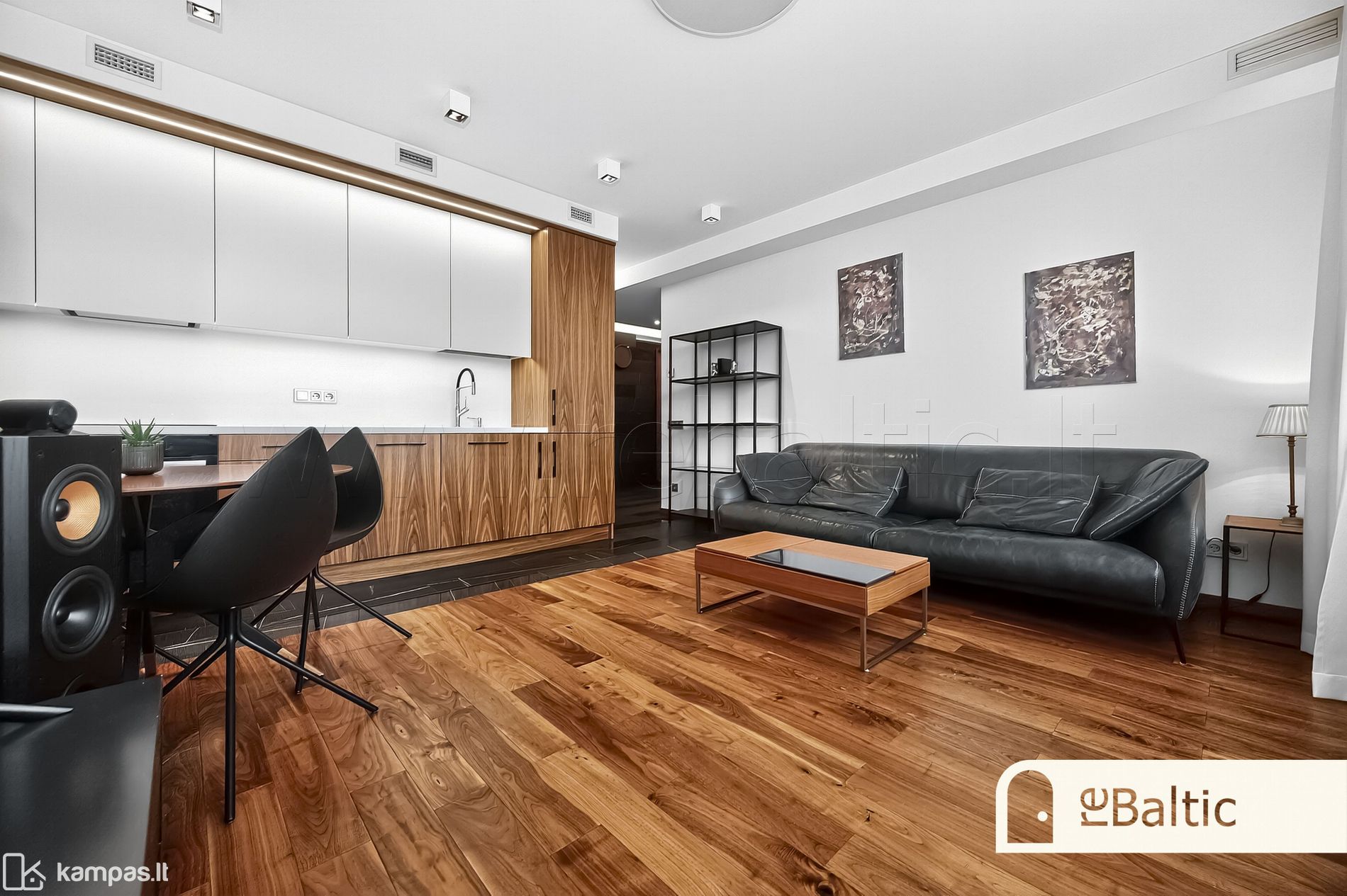 Spacious and luxuriously furnished 2-room apartment for rent in a modern A+ class building located in the prestigious M.K. Čiurlionio street with a views of the city center.