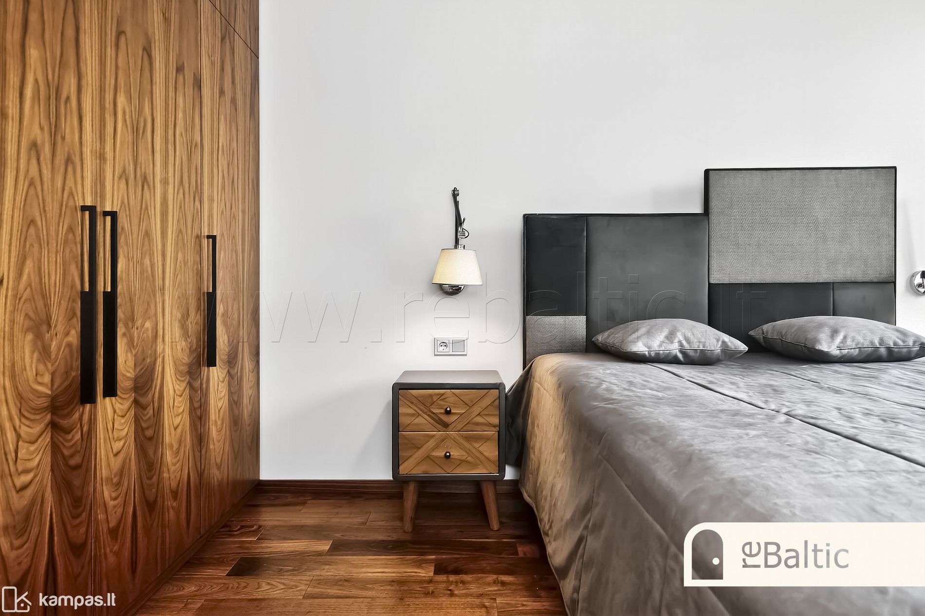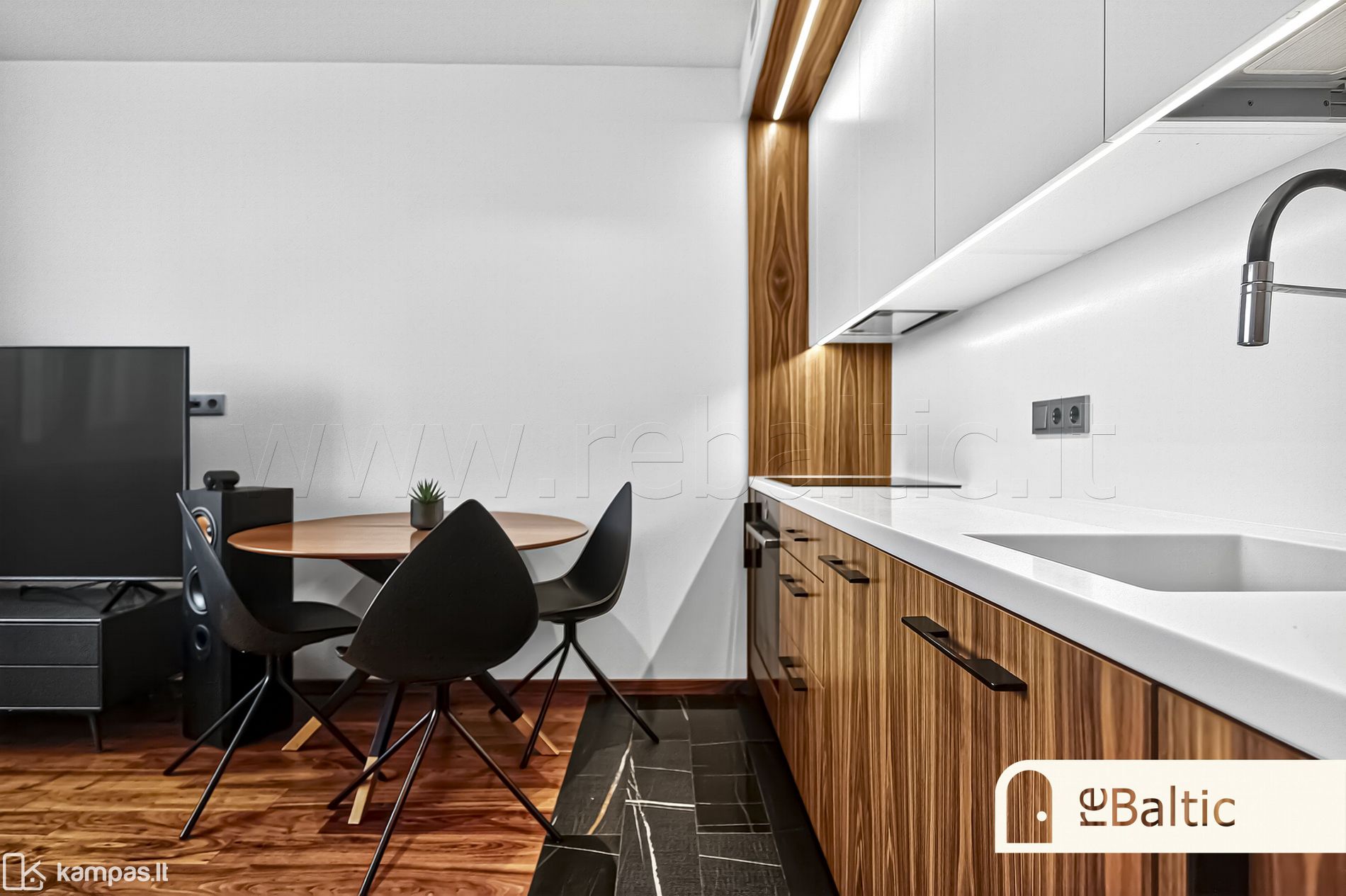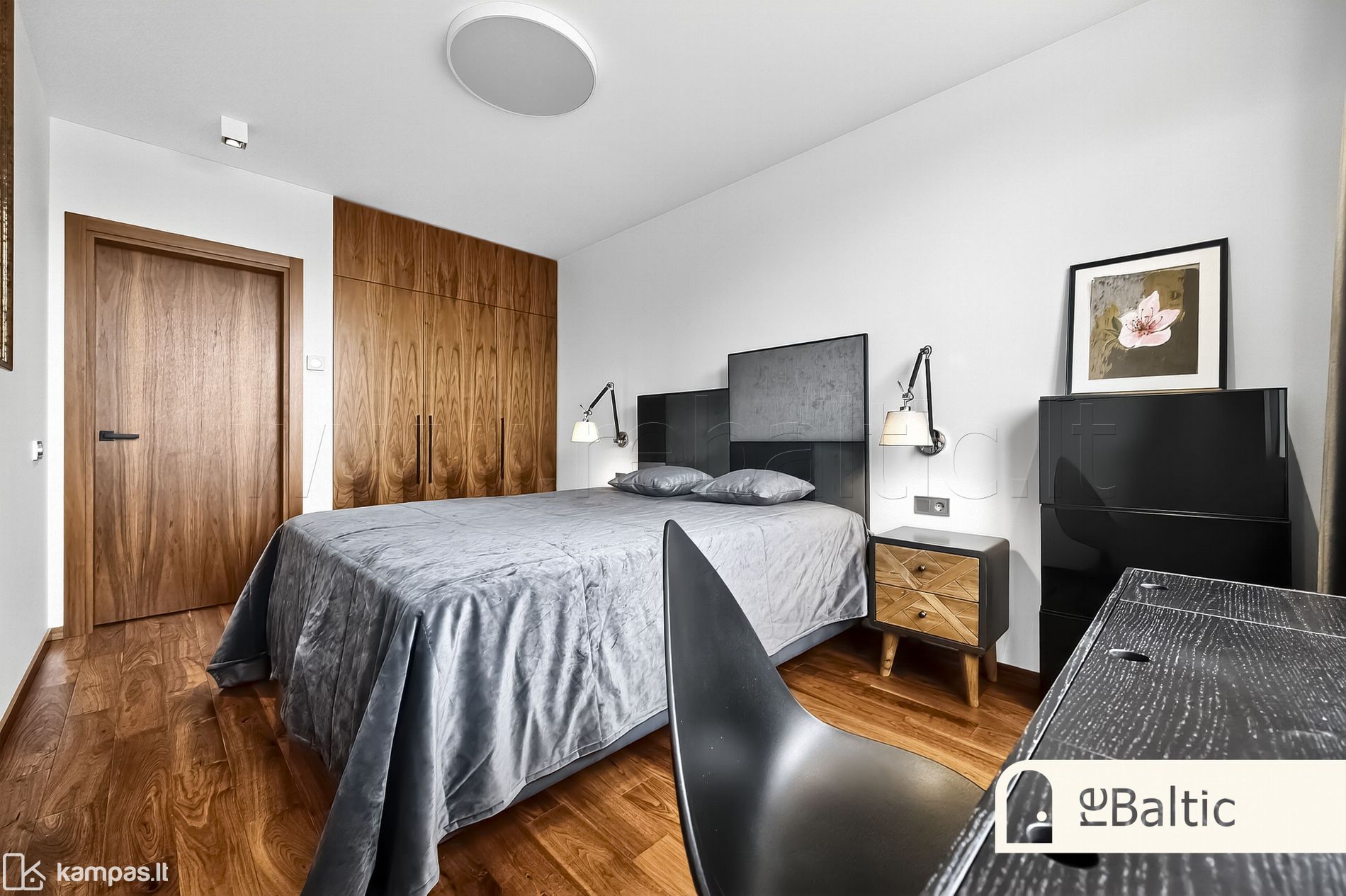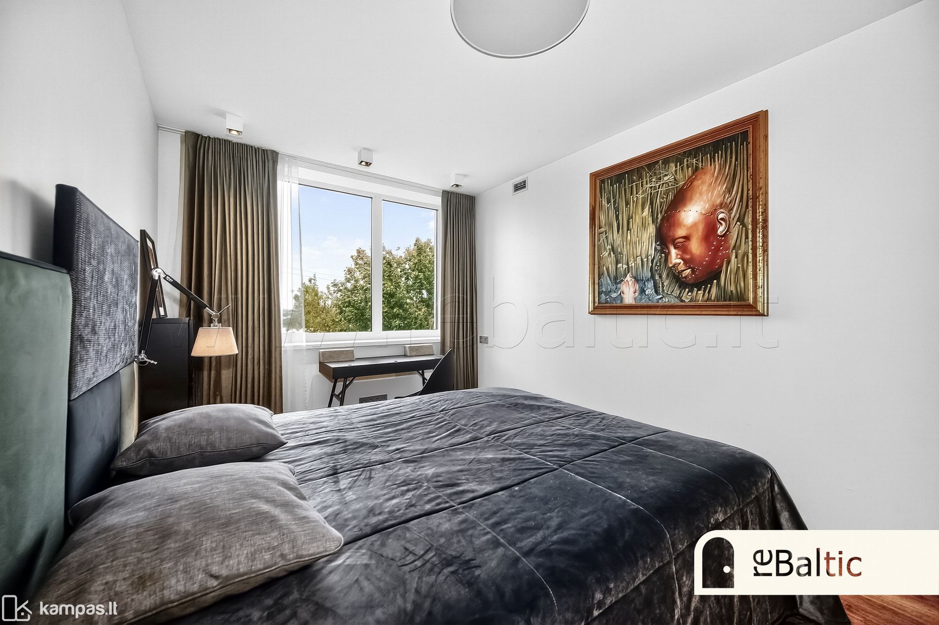 Spacious and luxuriously furnished 2-room apartment for rent in a modern A+ class building located in the prestigious M.K. Čiurlionio street with a views of the city center.