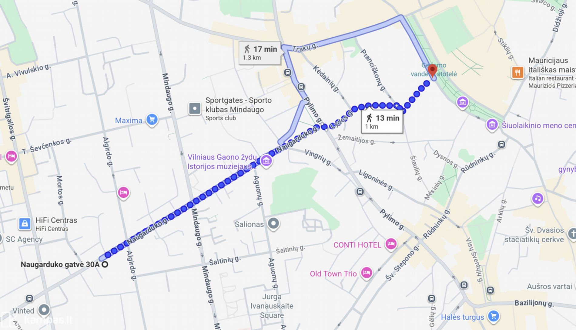 -- Iki Vokiečių g. 1 kilometras arba 13 min. pėsčiomis;