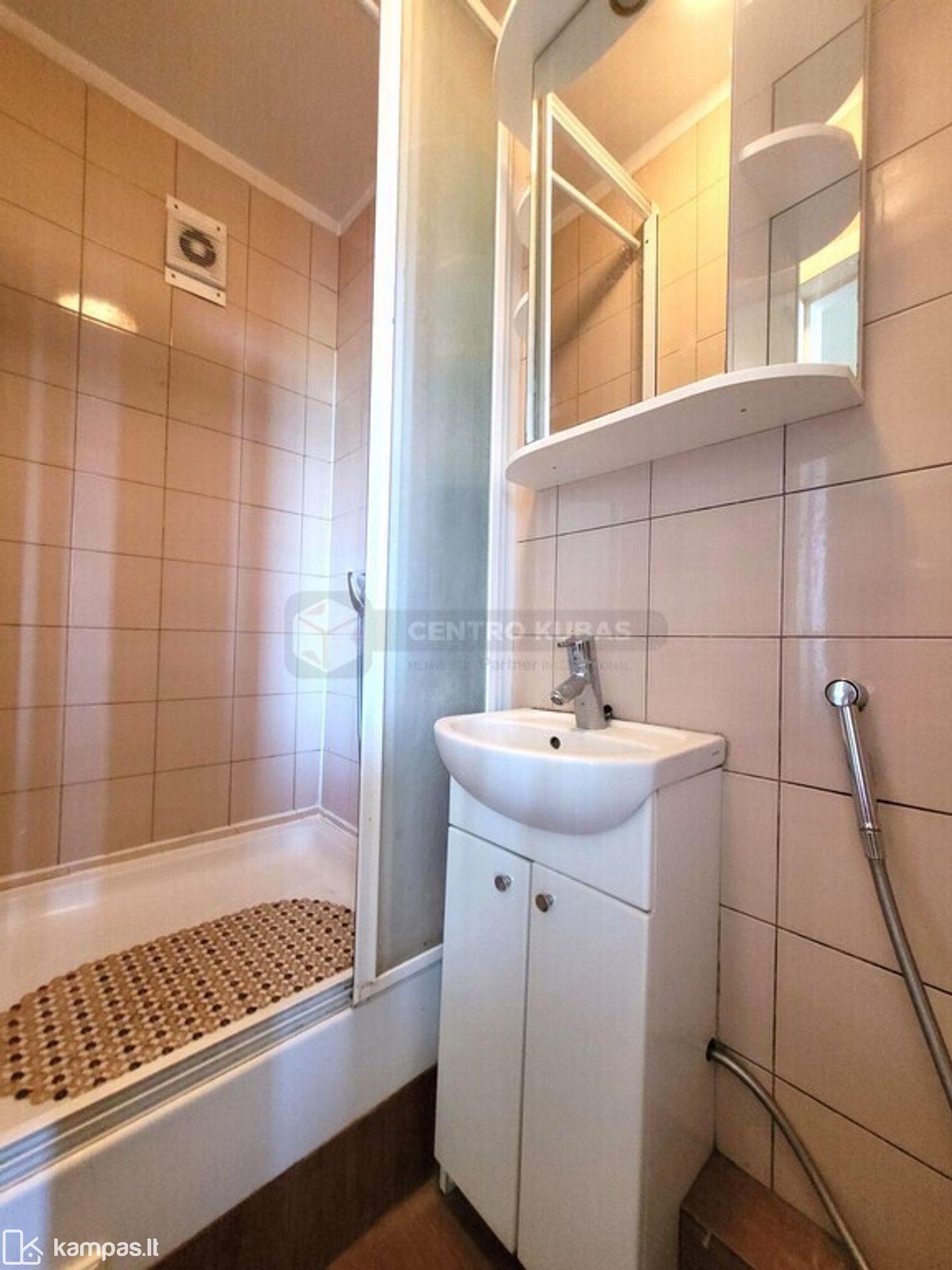 - Kambarys, virtuvė atskirta baru, vonios kambarys su dušo kabina, koridorius ir balkonas.