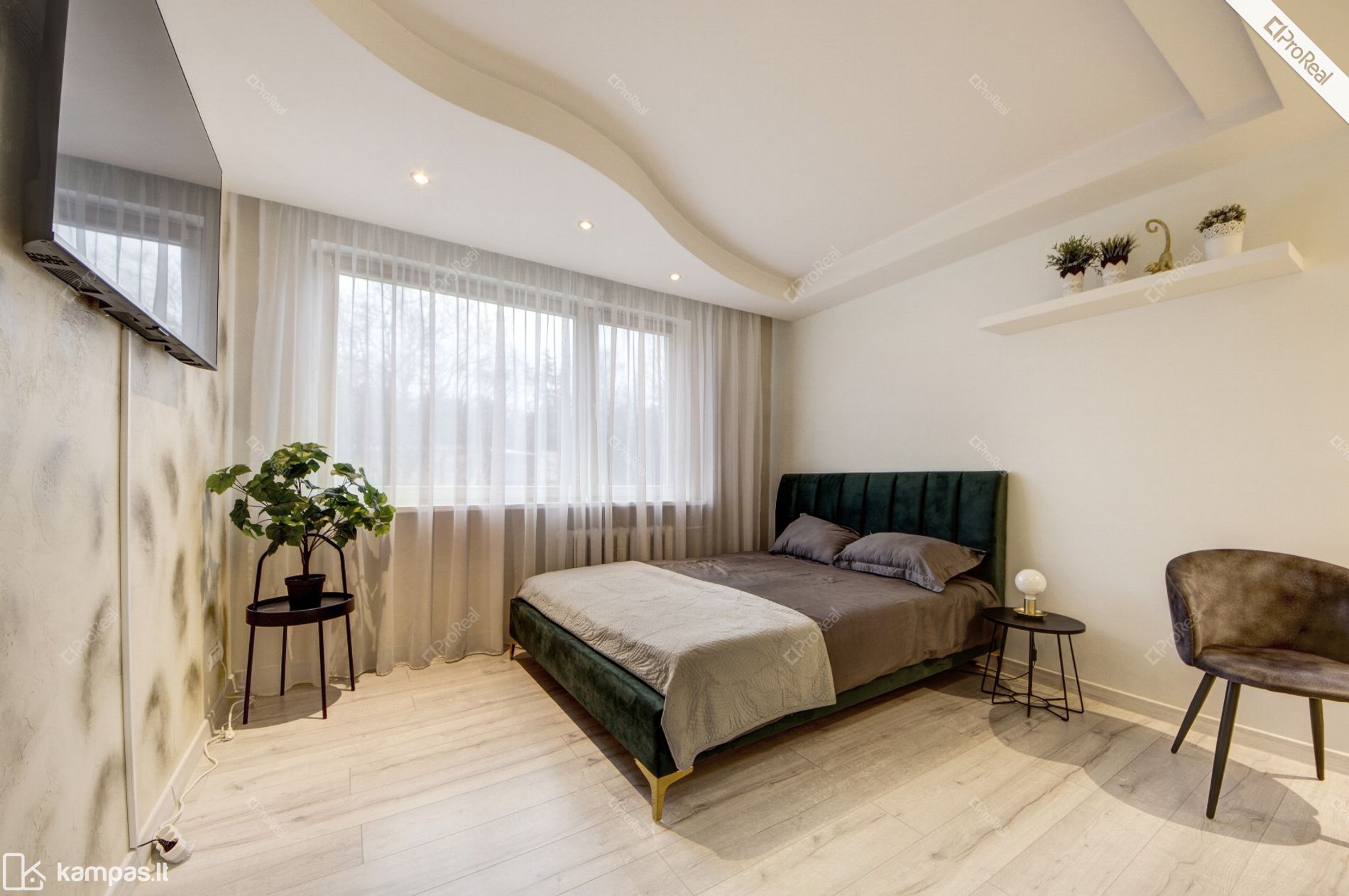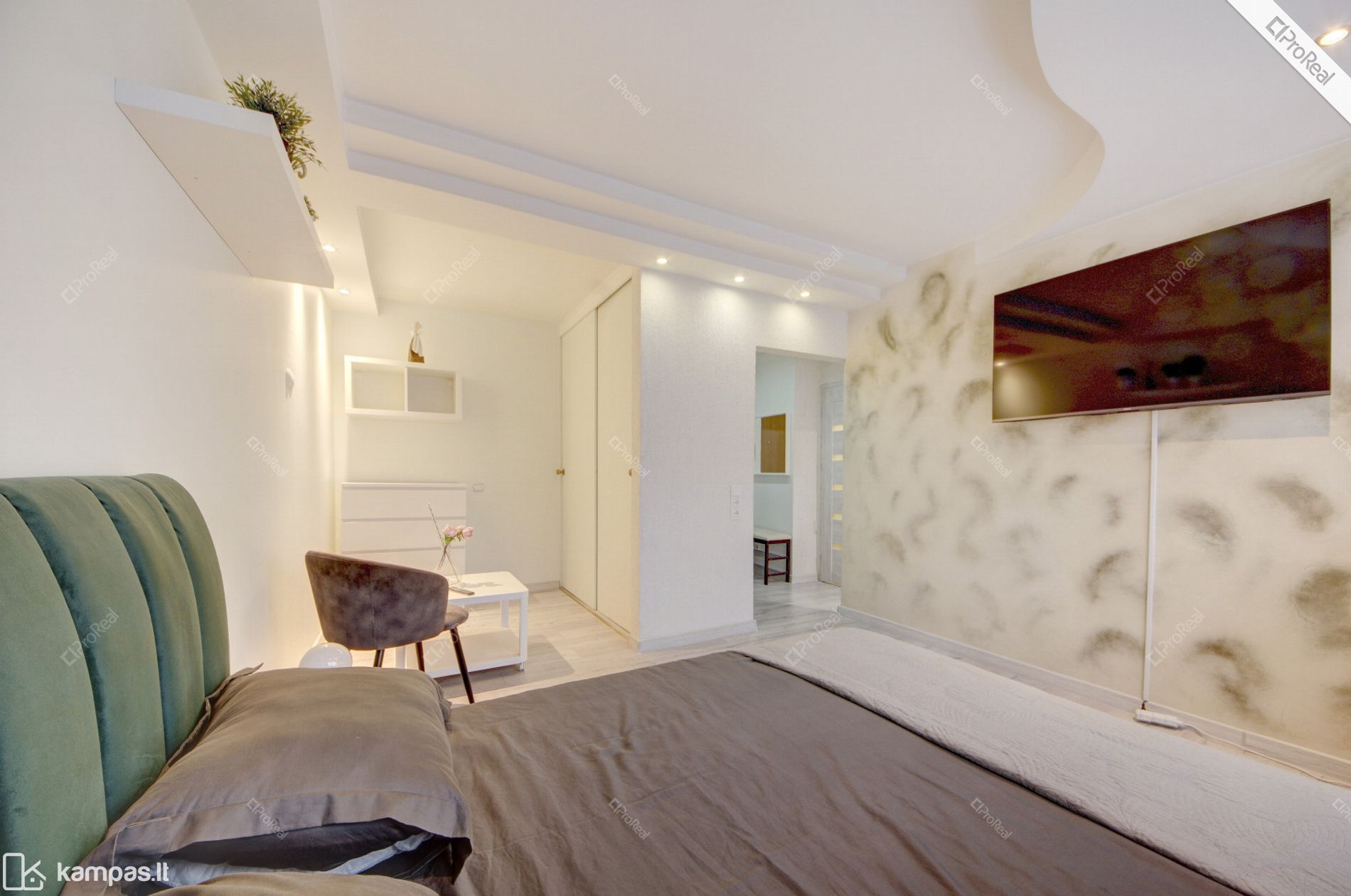 Kambaryje: Lova, staliukas, spinta, televizorius.