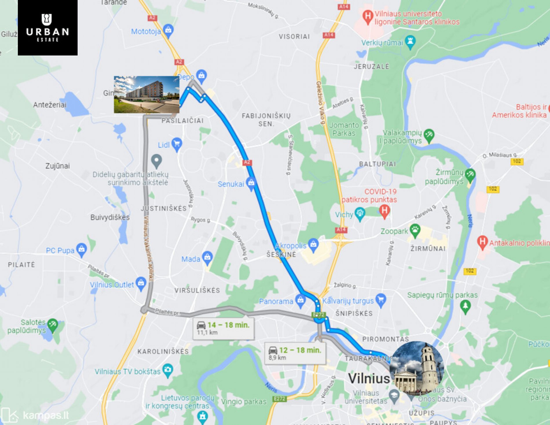 - Miesto centrą ir kitus mikrorajonus pasieksite vos per keliolika minučių tiek Ukmergės gatve, tiek Vakariniu aplinkkeliu.