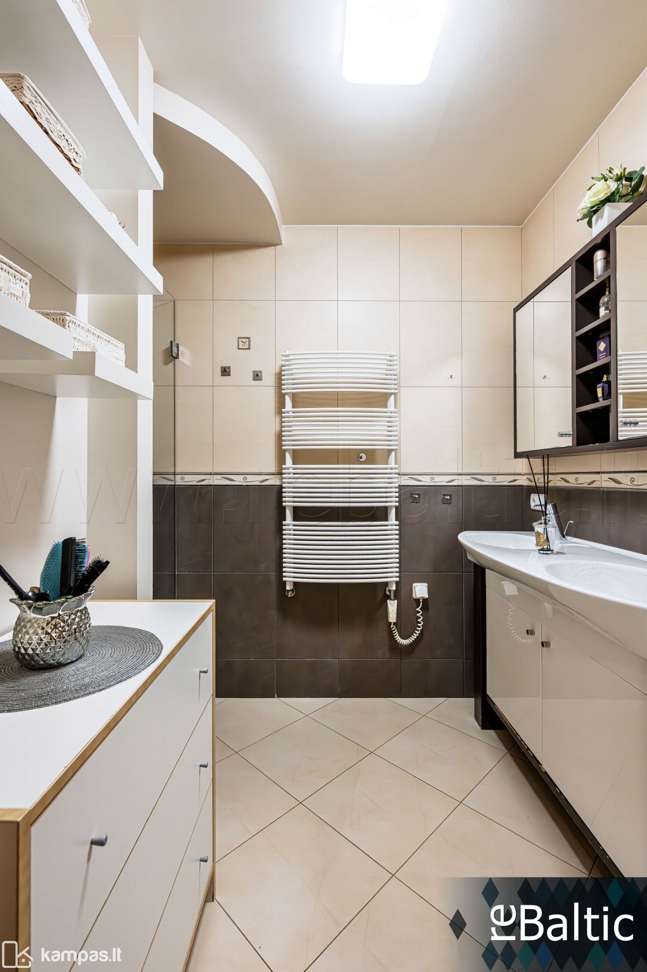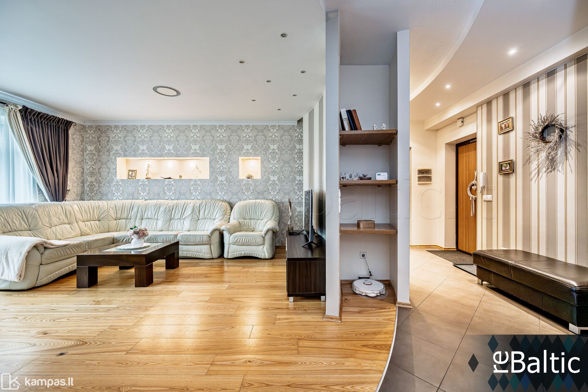- Grindinis šildymas prieškambaryje, virtuvės zonoje, vonioje ir tualete (reguliuojamas pagal poreikį).