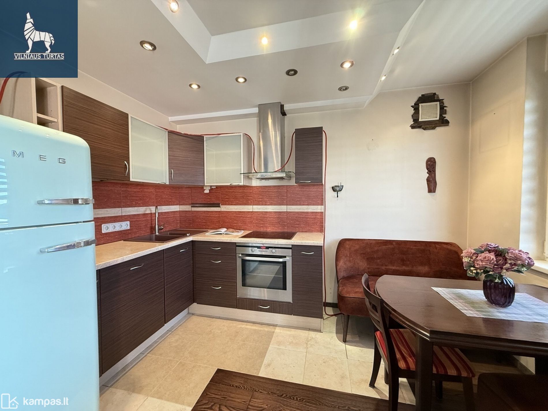 – Su baldais ir būtina buitine technika (Šaldytuvas, elektrinė kait;entė, orkaitė, skalbimo mašina);