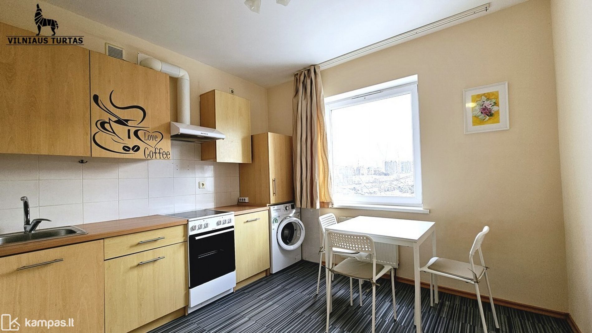 Karaliaučiaus g. 15, Pilaitėje, 2006 metų statybos name išnuomojamas šviesus, šiltas, ekonomiškas 1 kambario (34 kv/m) butas su balkonu: