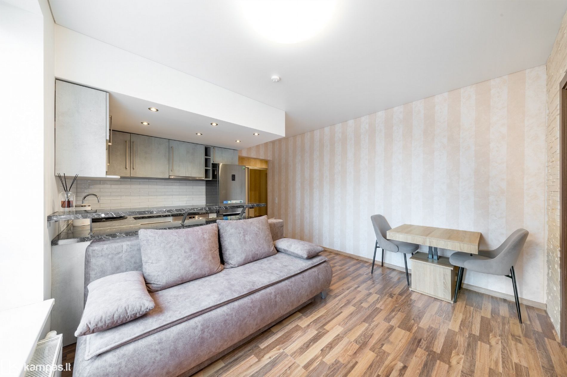 - Patogus išplanavimas: erdvi virtuvės ir svetainės zona, jaukus miegamasis su didele spinta jame, didelis vonios kambarys;
