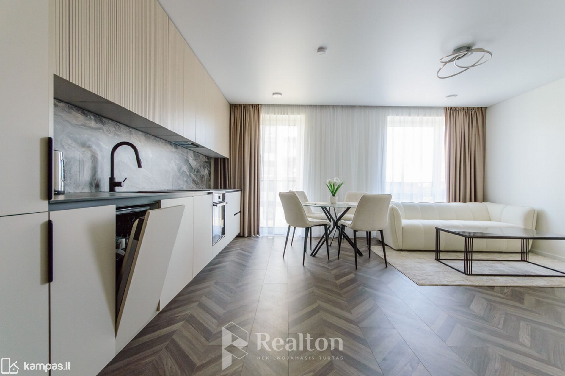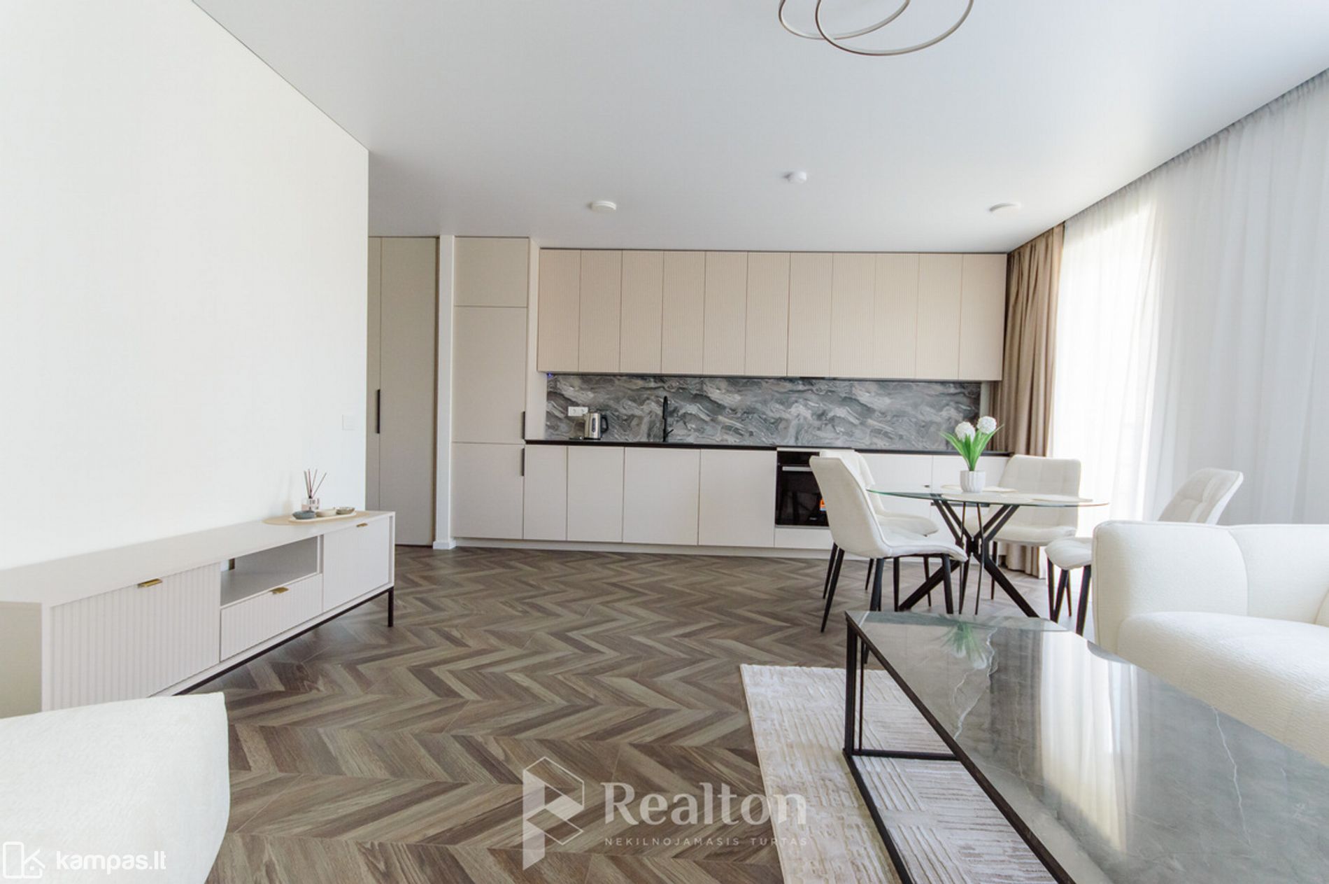 -- Svetainė kartu su virtuvės zona;