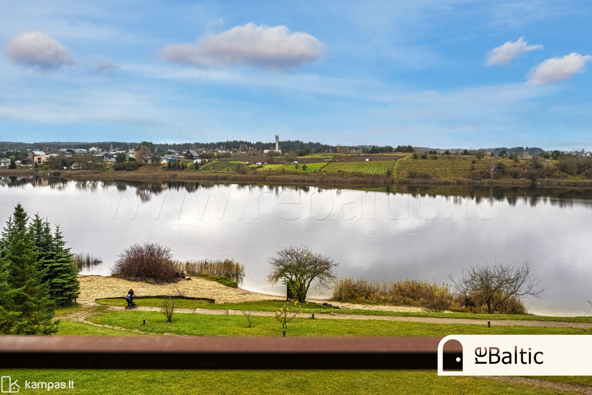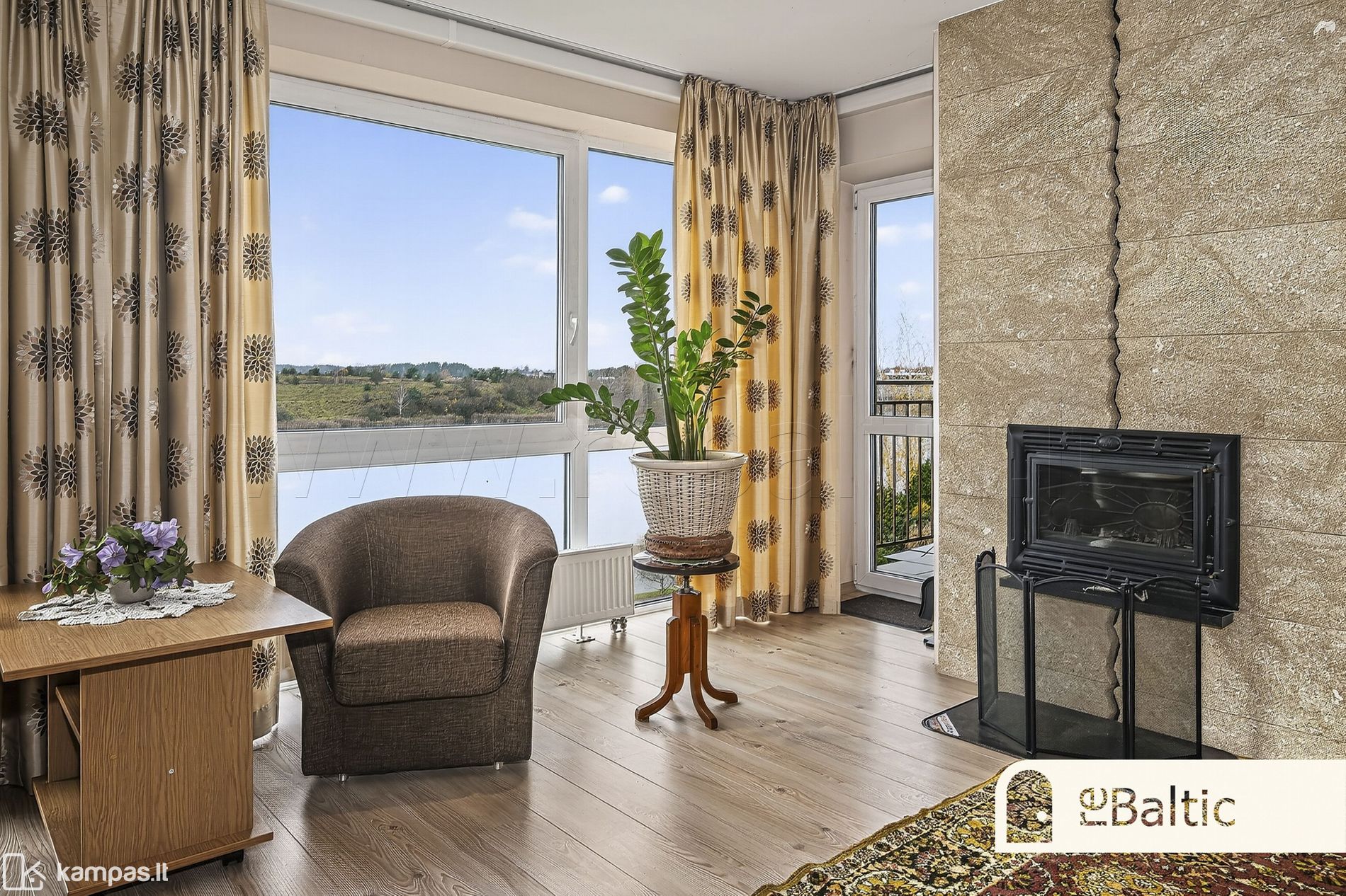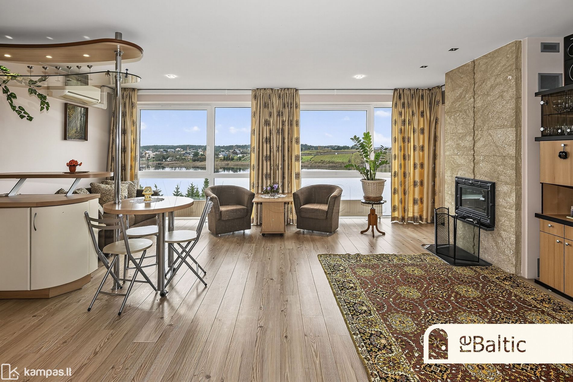 - Svetainė vienoje erdvėje su virtuve, yra balkonas/terasa į ežero pusę, židinys