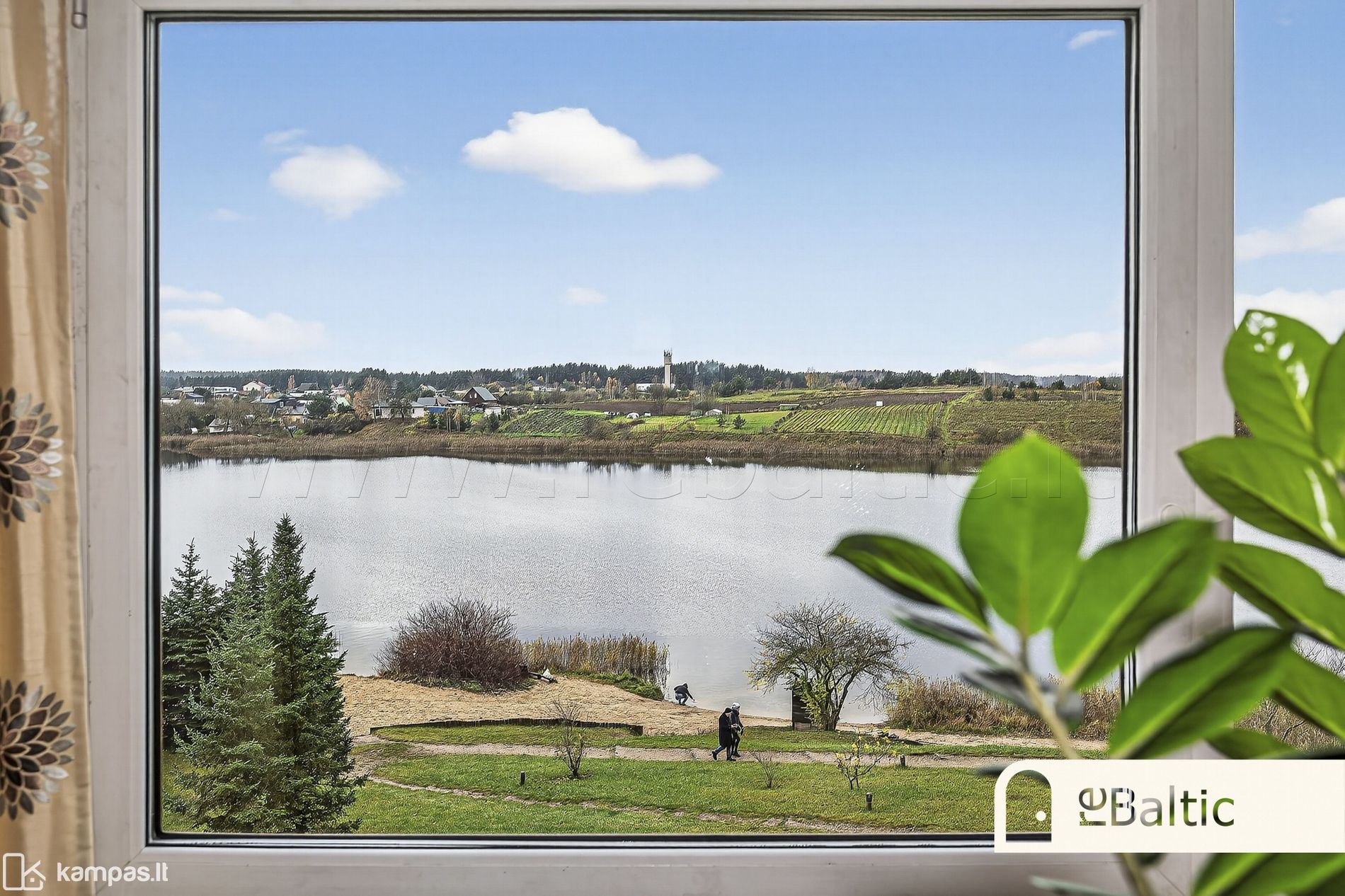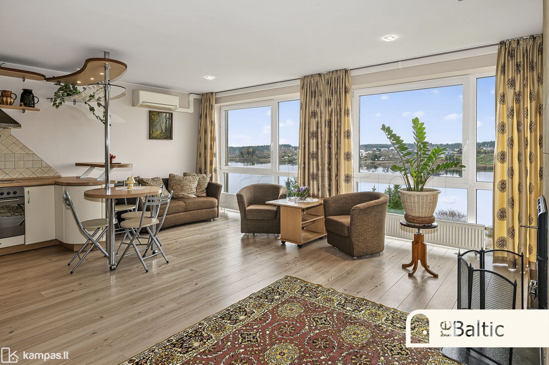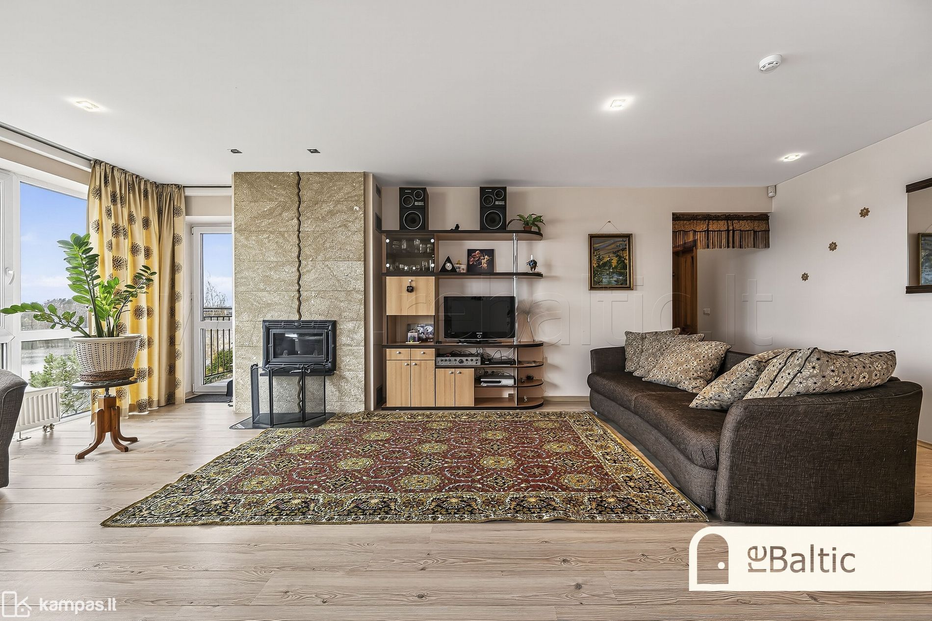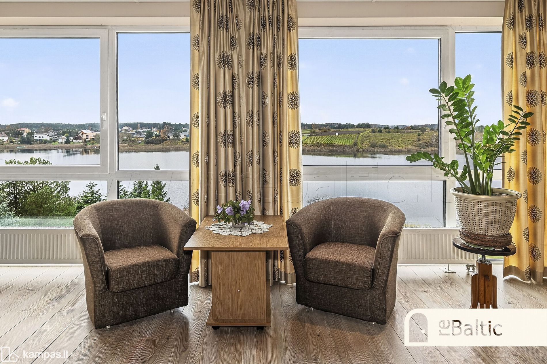 - Svetainė vienoje erdvėje su virtuve, yra balkonas/terasa į ežero pusę, židinys