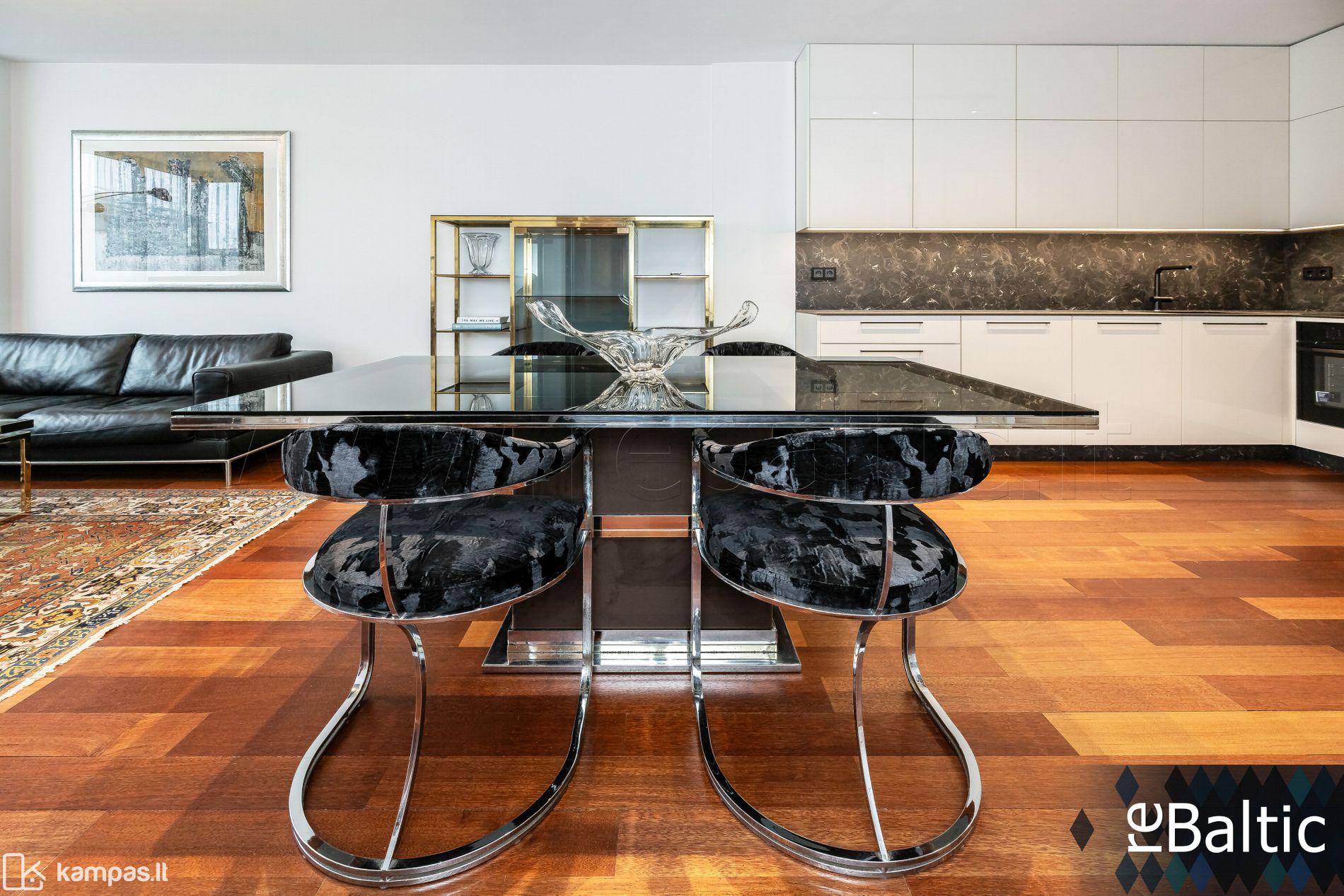 - Išskirtiniai baldai ir kokybiška buitinė technika, Bang & Olufsen televizorius, kondicionierius, skalbimo mašina, talpios sieninės spintos, kokybiškos grindys, modernūs apšvietimo sprendimai