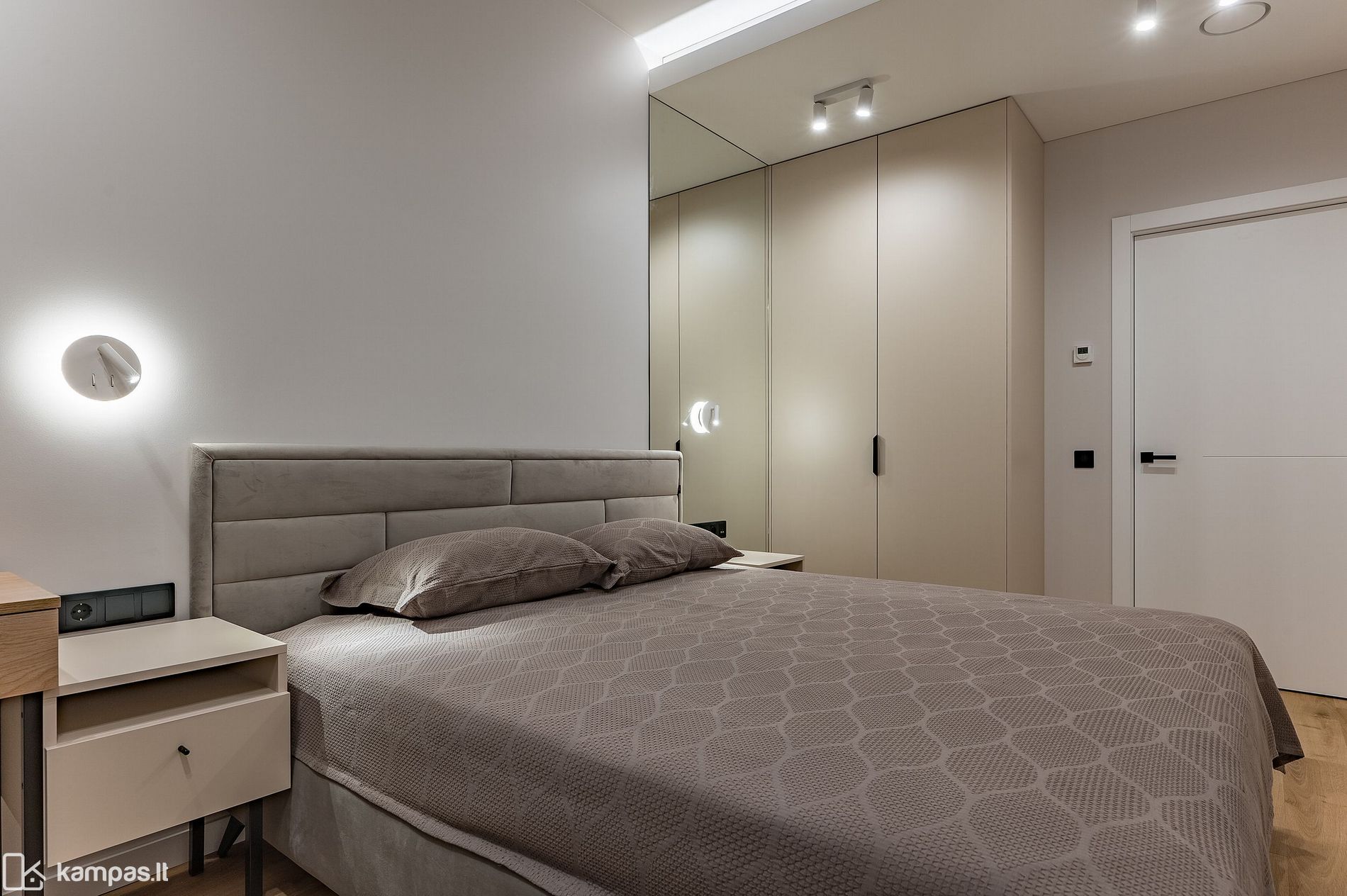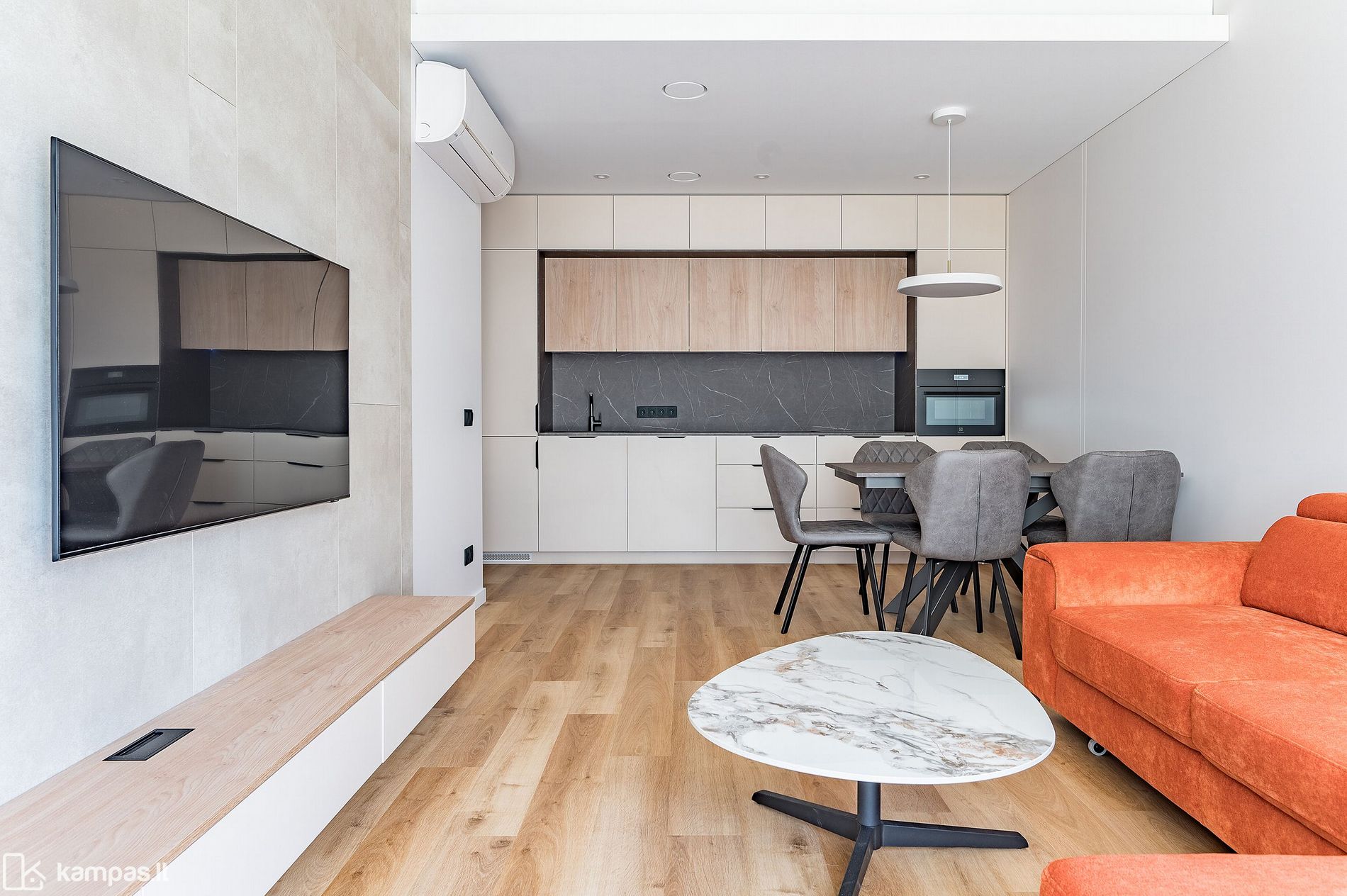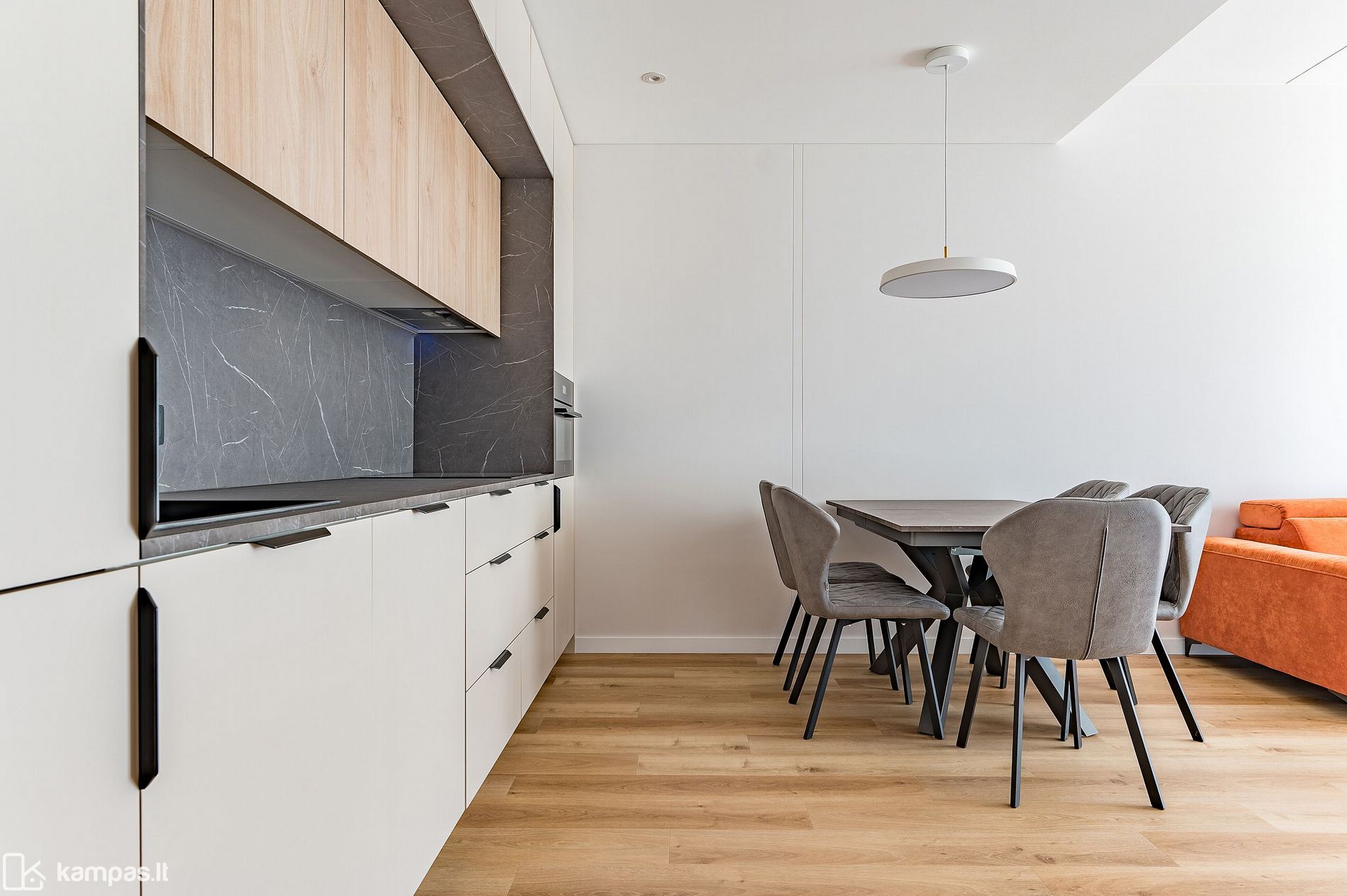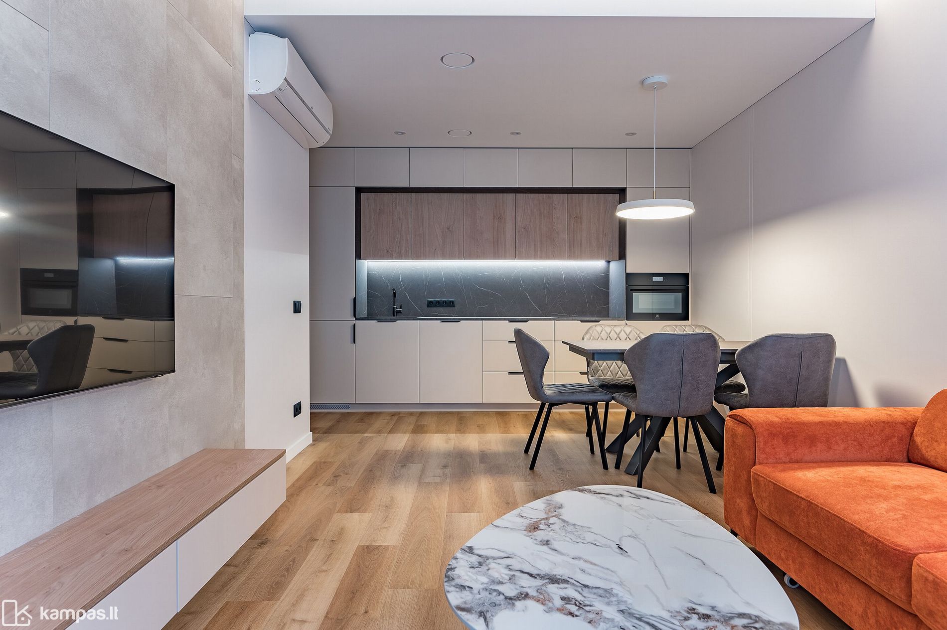 Designer-furnished two-room apartment in the center of Vilnius, right next to Gediminas Avenue. The apartment is in the new "I See Vilnius" project on a quiet, secluded Aludarių Street.
