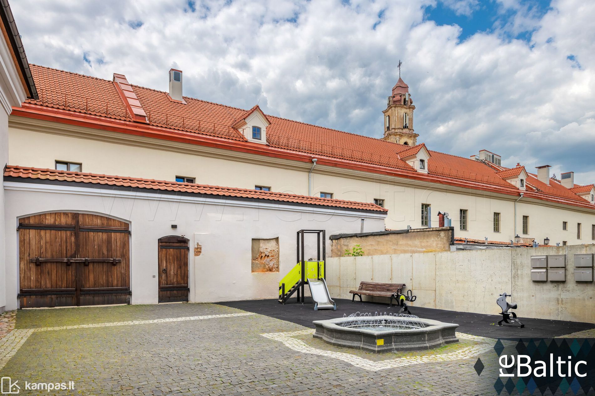 • Uždaras kiemas, išklotas trinkelėmis. Nuo pašalinių akių saugo įvažiavimo į kiemą vartai, vidinį kiemą juosianti pastatų siena ir atsiverianti panorama į Užupį.