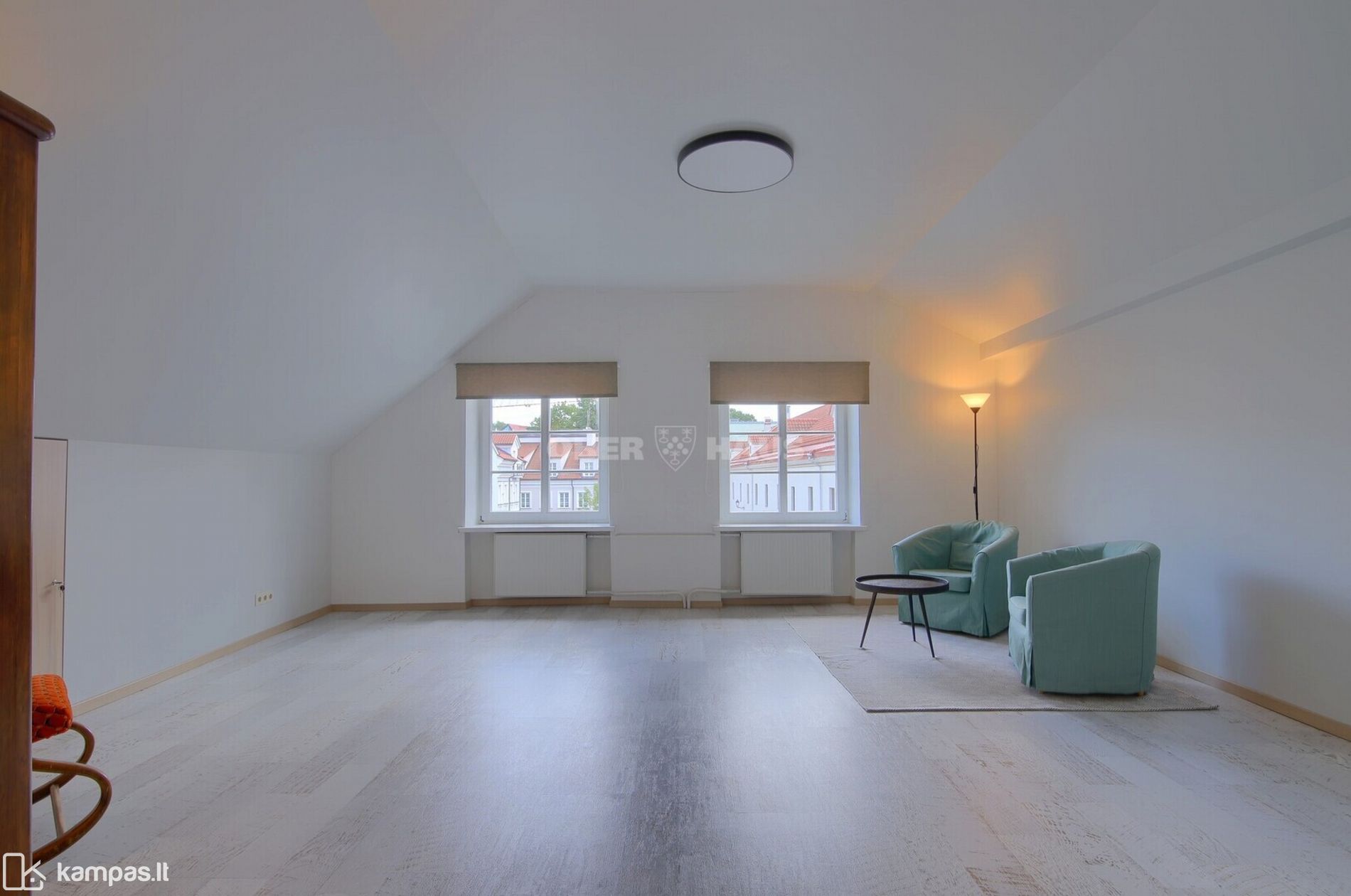 We offer a spacious and bright 157 sq. m. apartment for rent with a separate entrance, spread across three floors. This cozy, well-designed home is perfect for a family or those seeking a unique living space in the heart of Vilnius. A private enclosed courtyard ensures peace and privacy. The apartment is rented unfurnished.