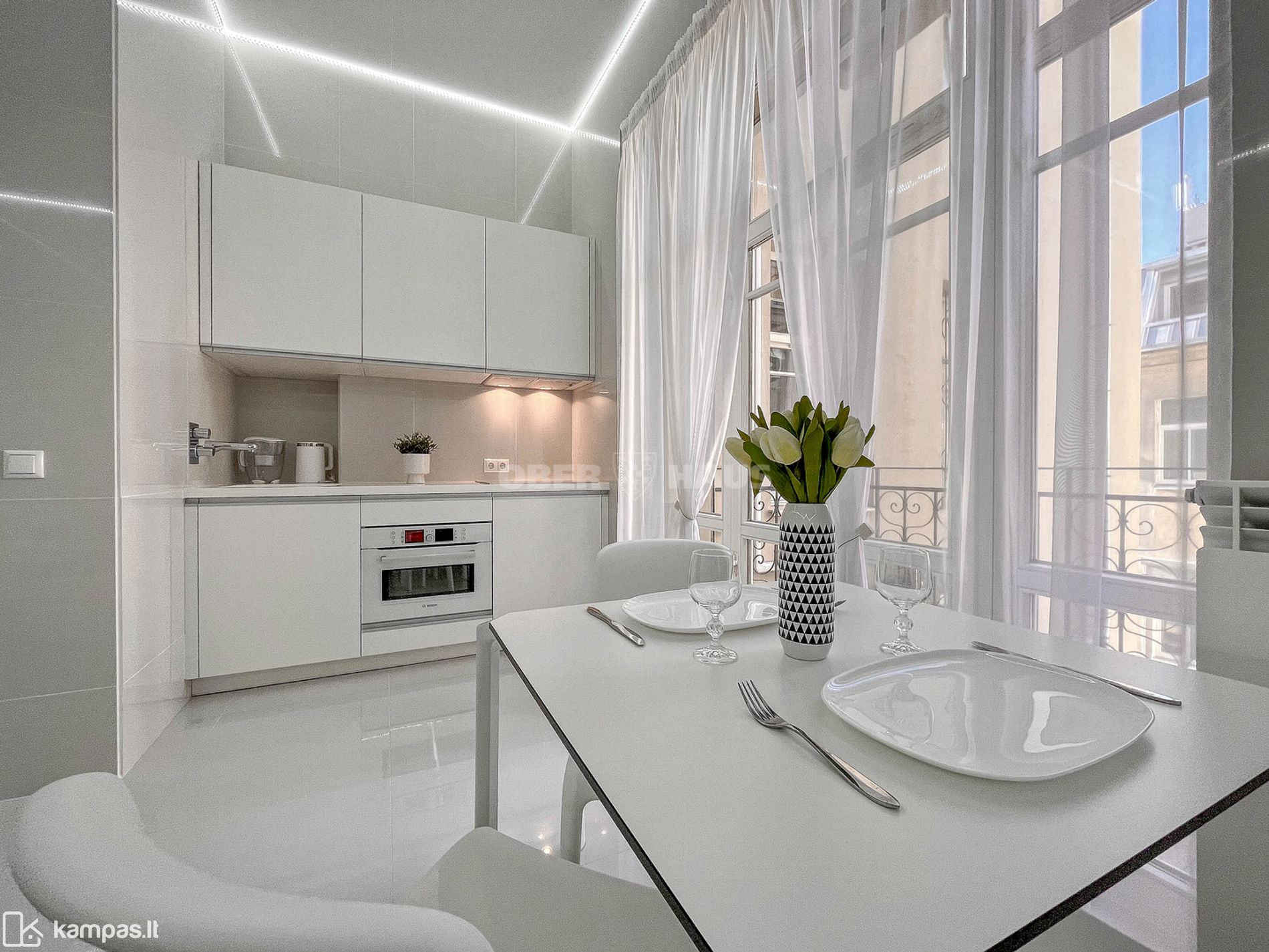 Bute svetainė sujungta su virtuve, atskiras miegamasis, vonia ir wc kartu, yra sauna. Yra jaukus balkonas į vidinį kiemą. Butas nuomojamas su visais baldais ir buitine technika (viryklė ir orkaitė, šaldytuvas, skalbimo/džiovinimo mašina, kondicionierius, televizoriai).