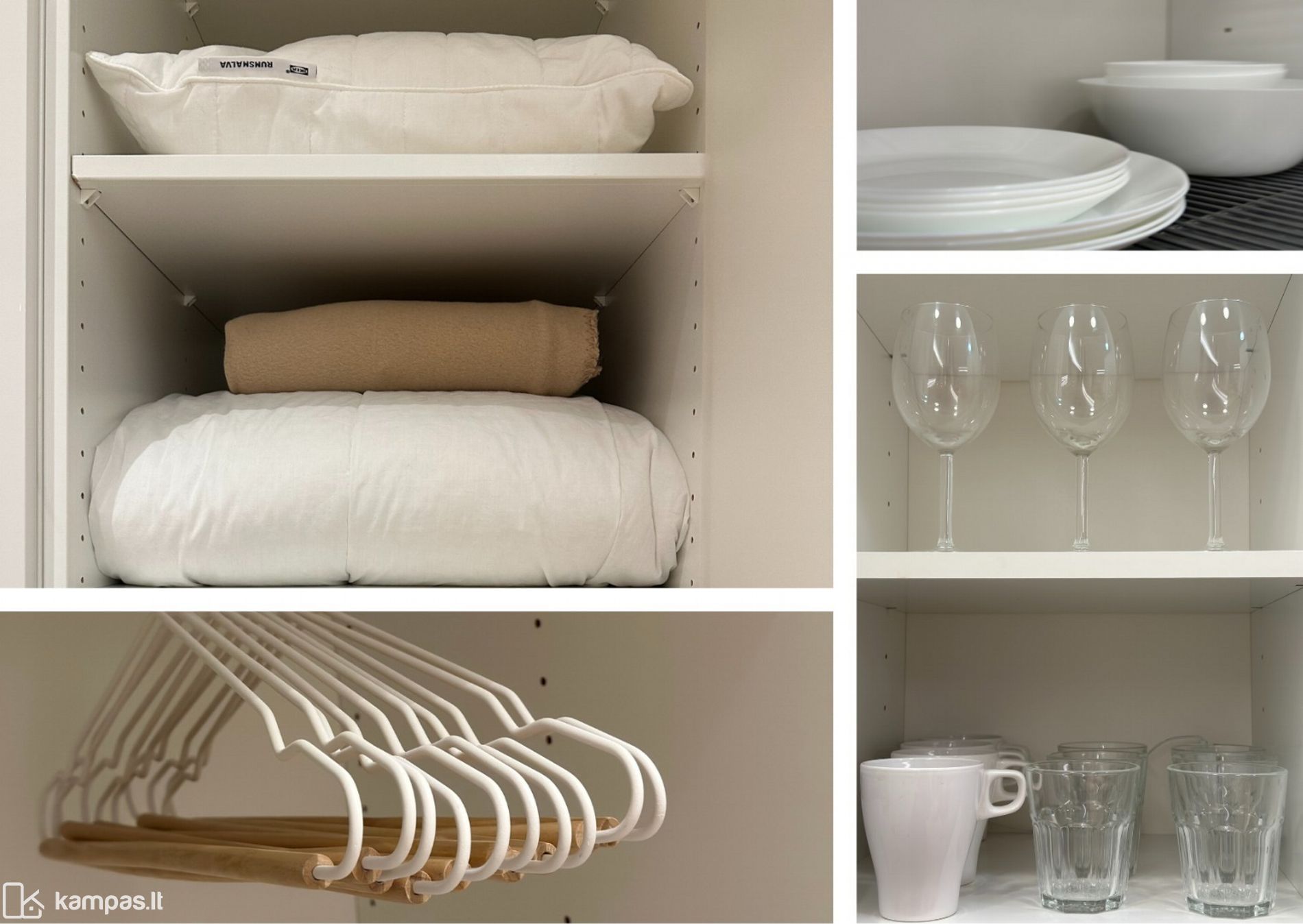 • Nuomojamas su visais baldais ir buitine technika, matomais nuotraukose, jei reikėtų papildomų daiktų – galima susitarti individualiai