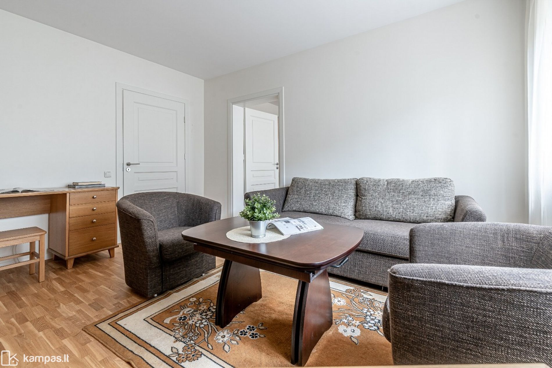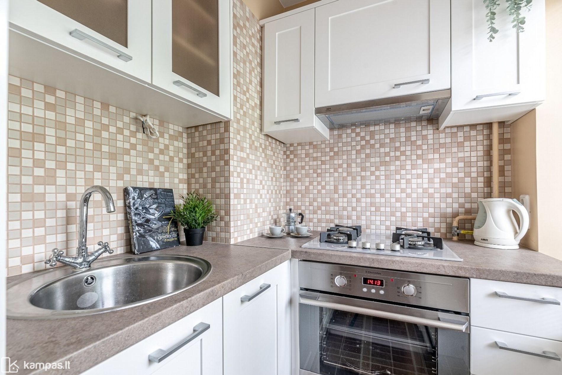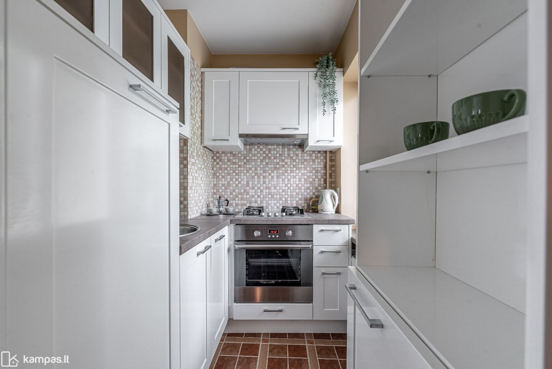 • Nuomojamas su baldais (matomais nuotraukose) ir buitine technika (dujine vyrykle, orkaite, šaldytuvu, gartraukiu, el.virduliu, kavos aparatu, skalbimo mašina ir kt.)