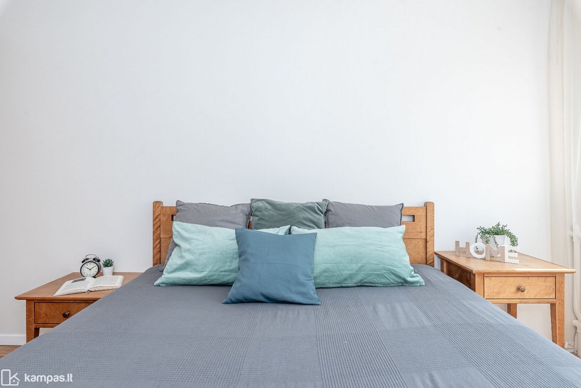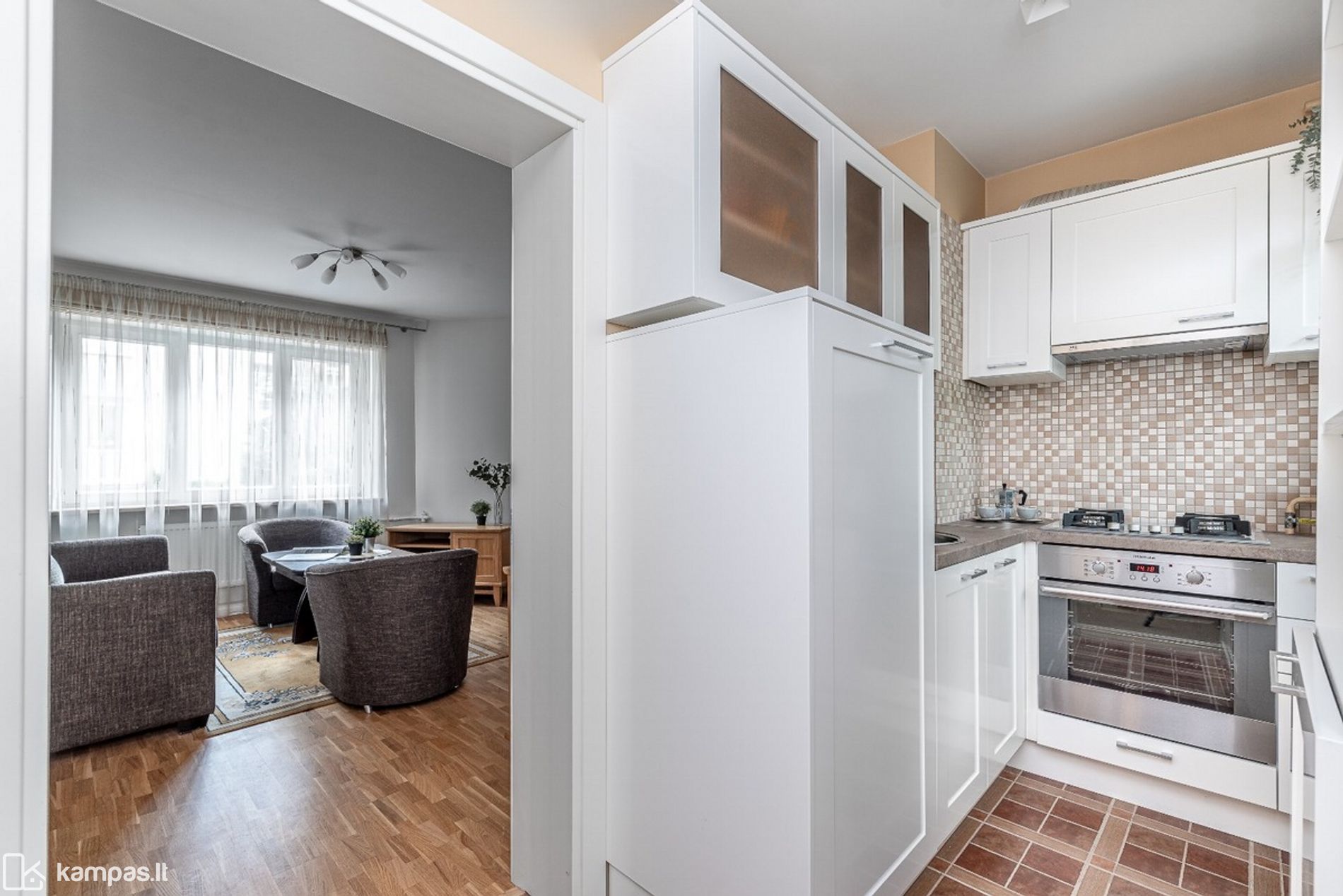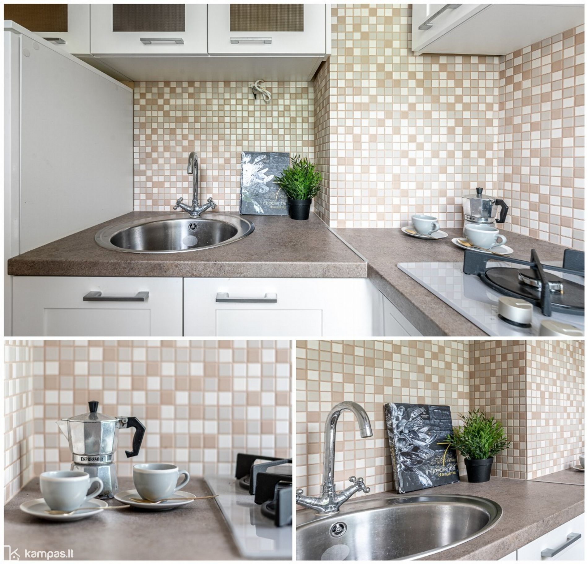 • Nuomojamas su baldais (matomais nuotraukose) ir buitine technika (dujine vyrykle, orkaite, šaldytuvu, gartraukiu, el.virduliu, kavos aparatu, skalbimo mašina ir kt.)